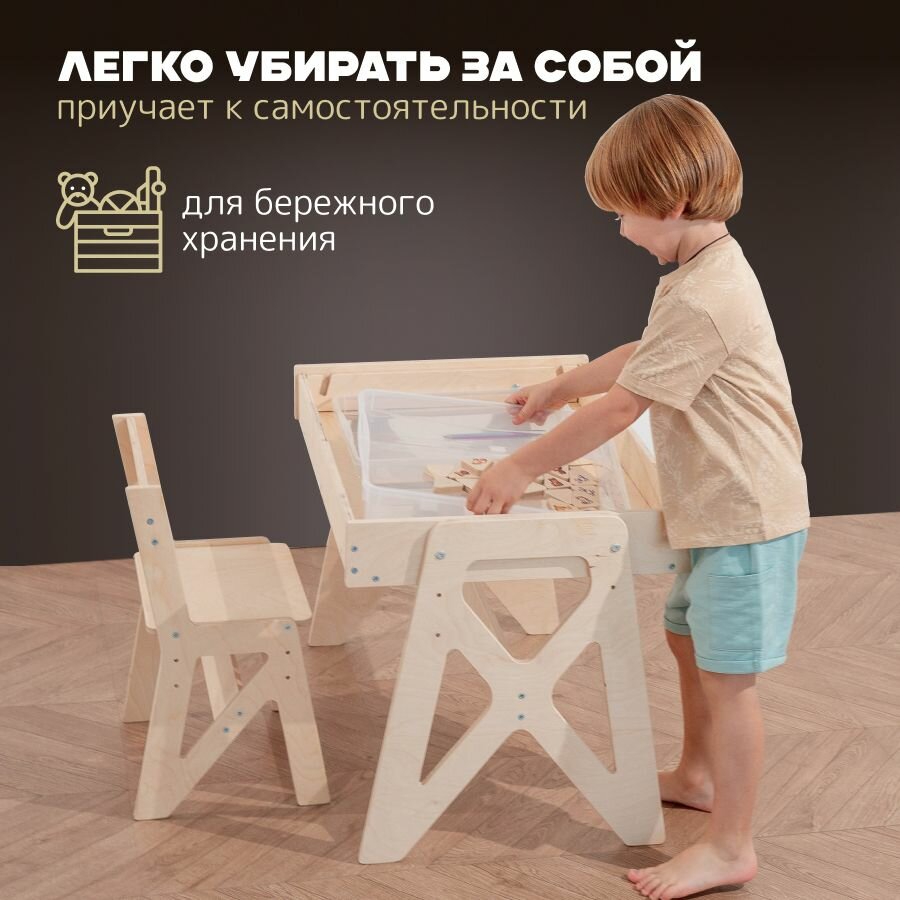 Комплект растущей мебели стол и стул с контейнерами "Монте" шлифованный PAPPADO