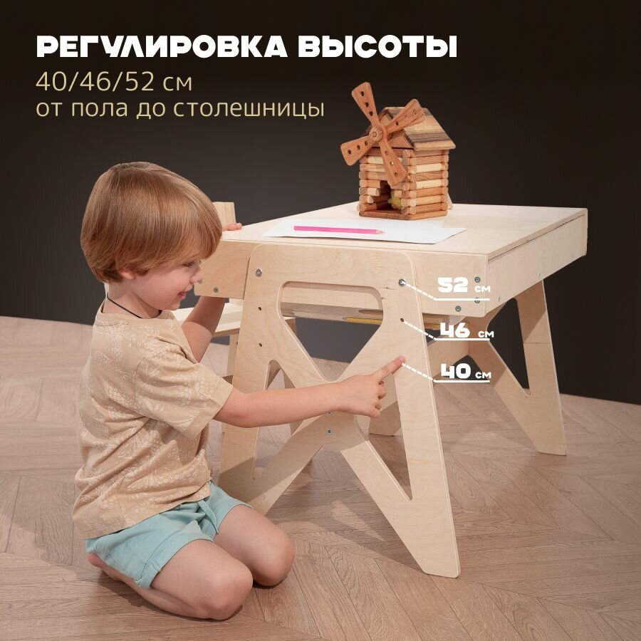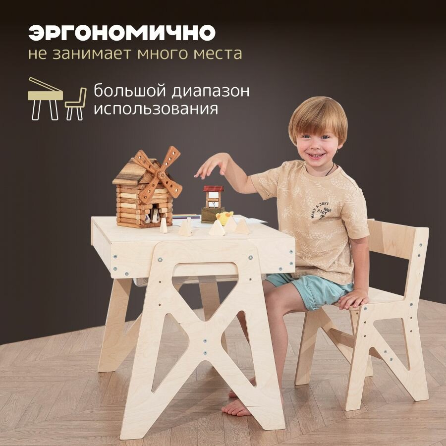 Комплект растущей мебели стол и стул "Для самых маленьких" без покрытия PAPPADO