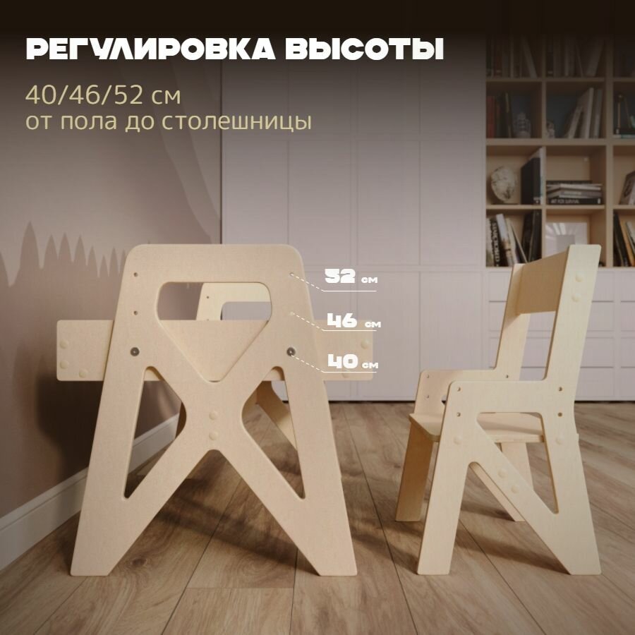 Комплект растущей мебели стол и стул "Для самых маленьких" без покрытия PAPPADO