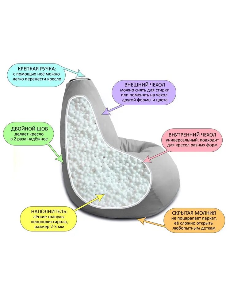 Кресло-мешок PUFON груша, размер 2XL, серый , материал дюспо