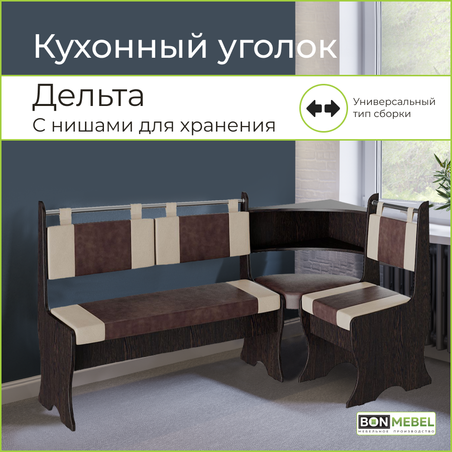 Кухонный уголок Дельта BONMEBEL Венге/коричневый беж. 152х104х90.5 см