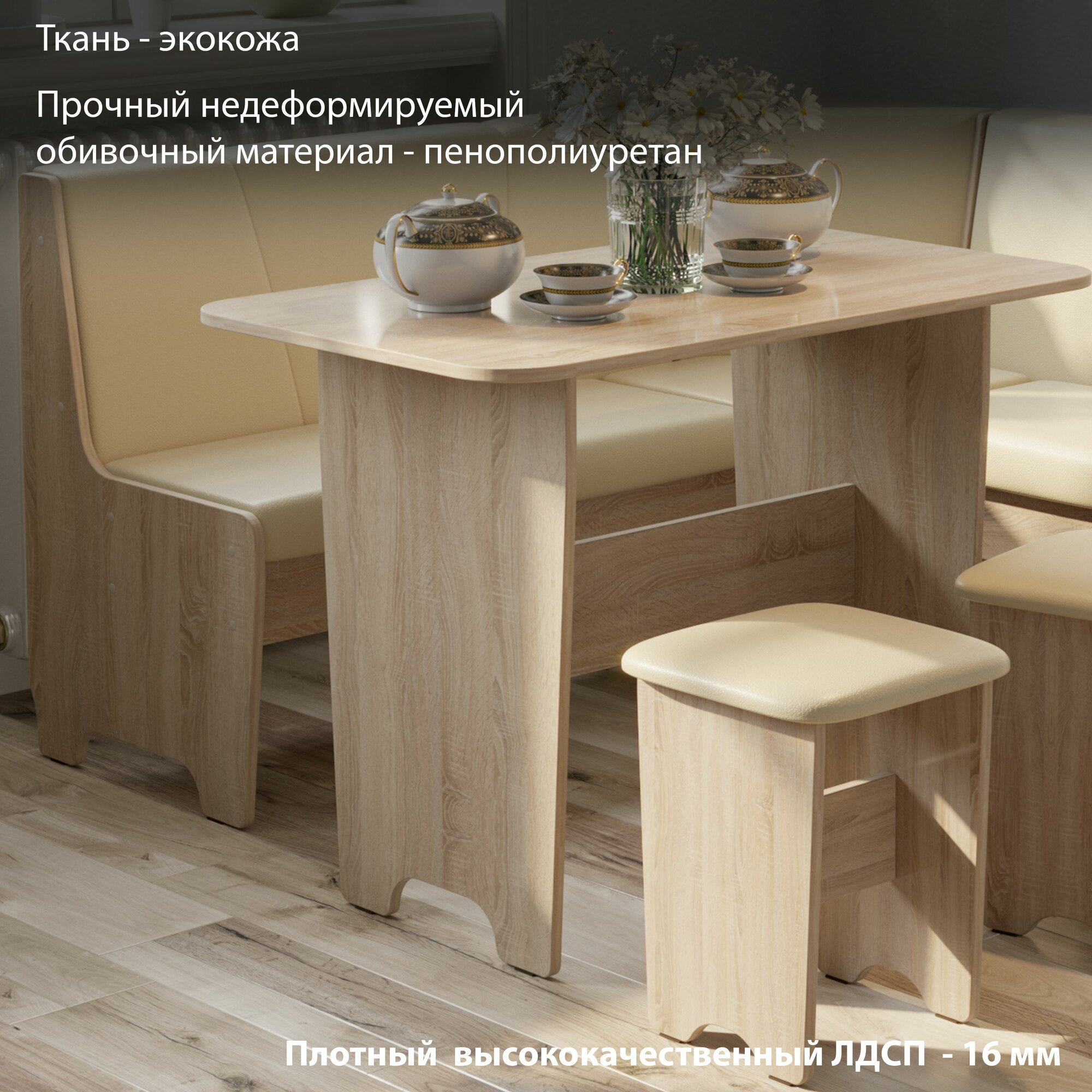Кухонный уголок Мебель Трия Техас, ЛДСП, искусственный кожзам, 4 предмета интересное: