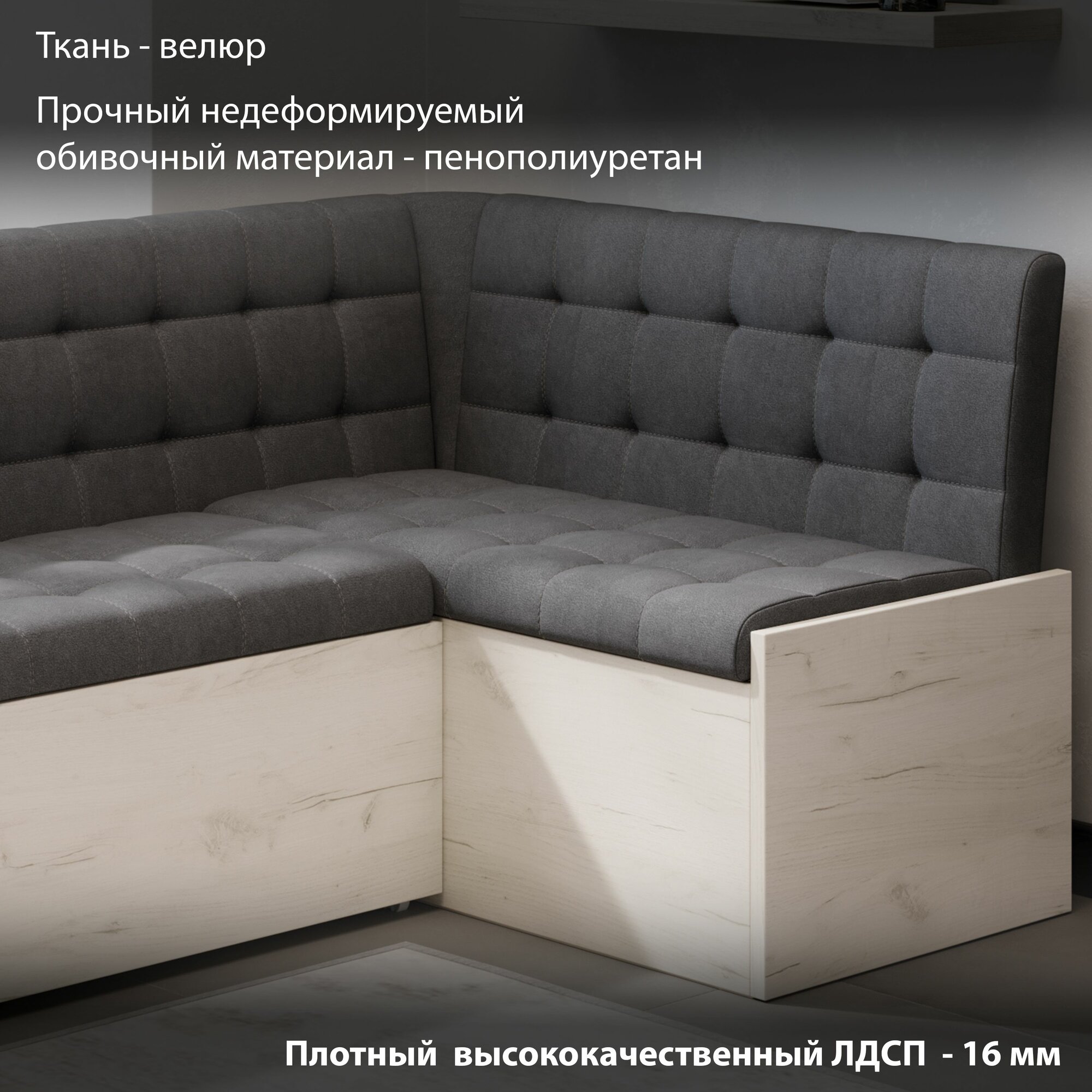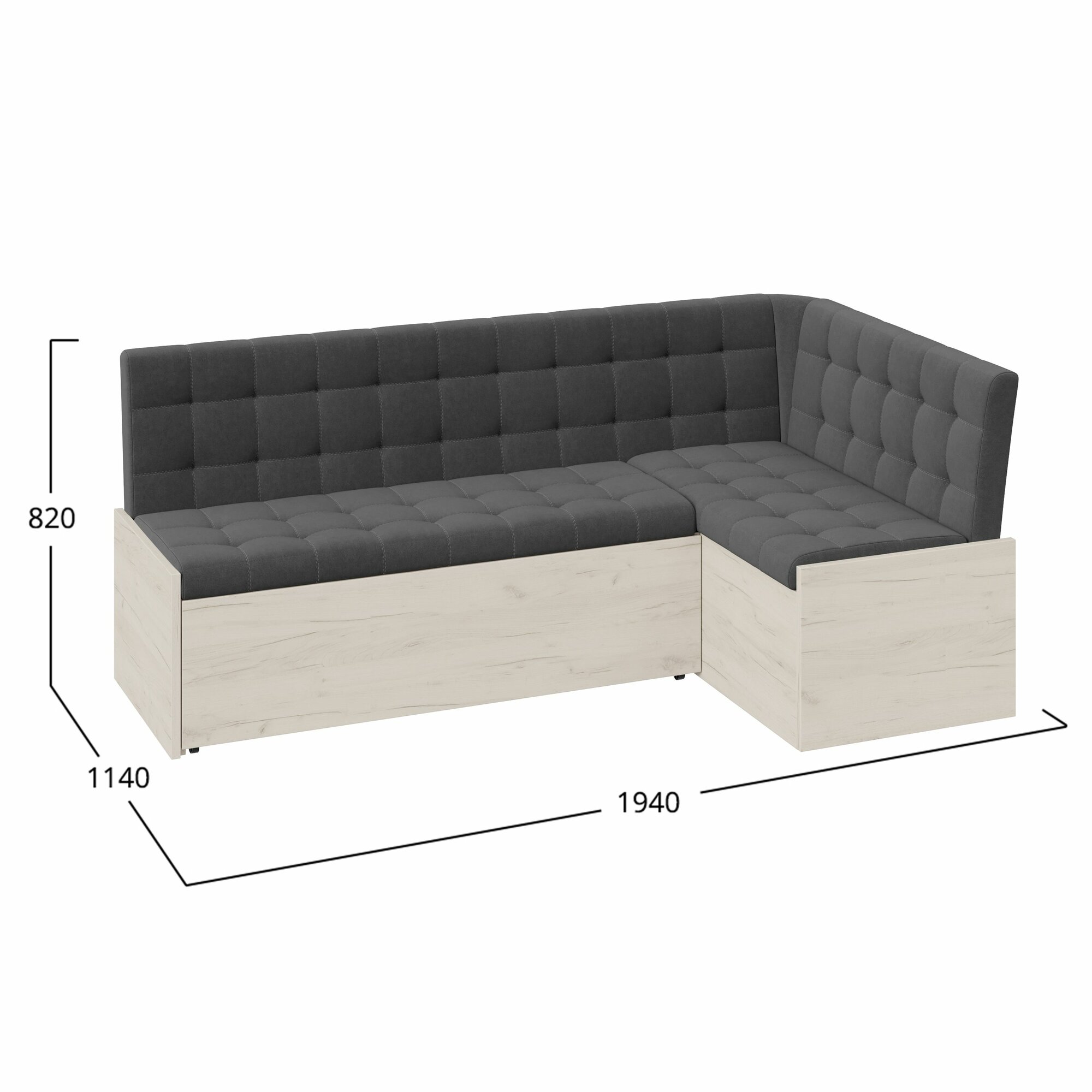 Купить Кухонный уголок Скамья угловая со спальным местом Форест Дуб крафт белый/Велюр серый