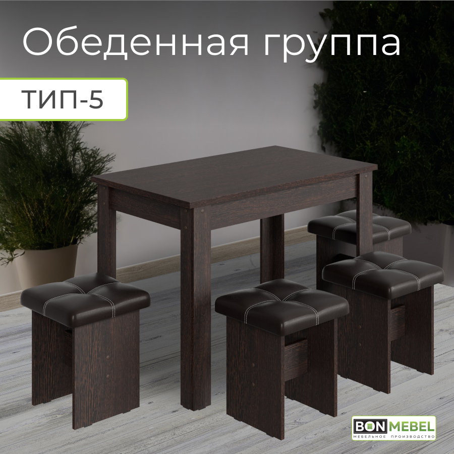 Обеденная группа BONMEBEL Тип 5, ЛДСП Дуб Венге/КЗ Шоколад100x60x74 см, кухонный стол, табуреты, кухонный комплект интересное: