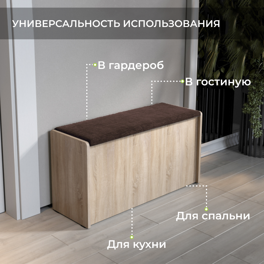 СохранитьПуф BONMEBEL, Чикаго Тип 2, Дуб сонома/Рогожка Коричневый, банкетка в прихожую, скамья для кухни с ящиком для хранения интересное: