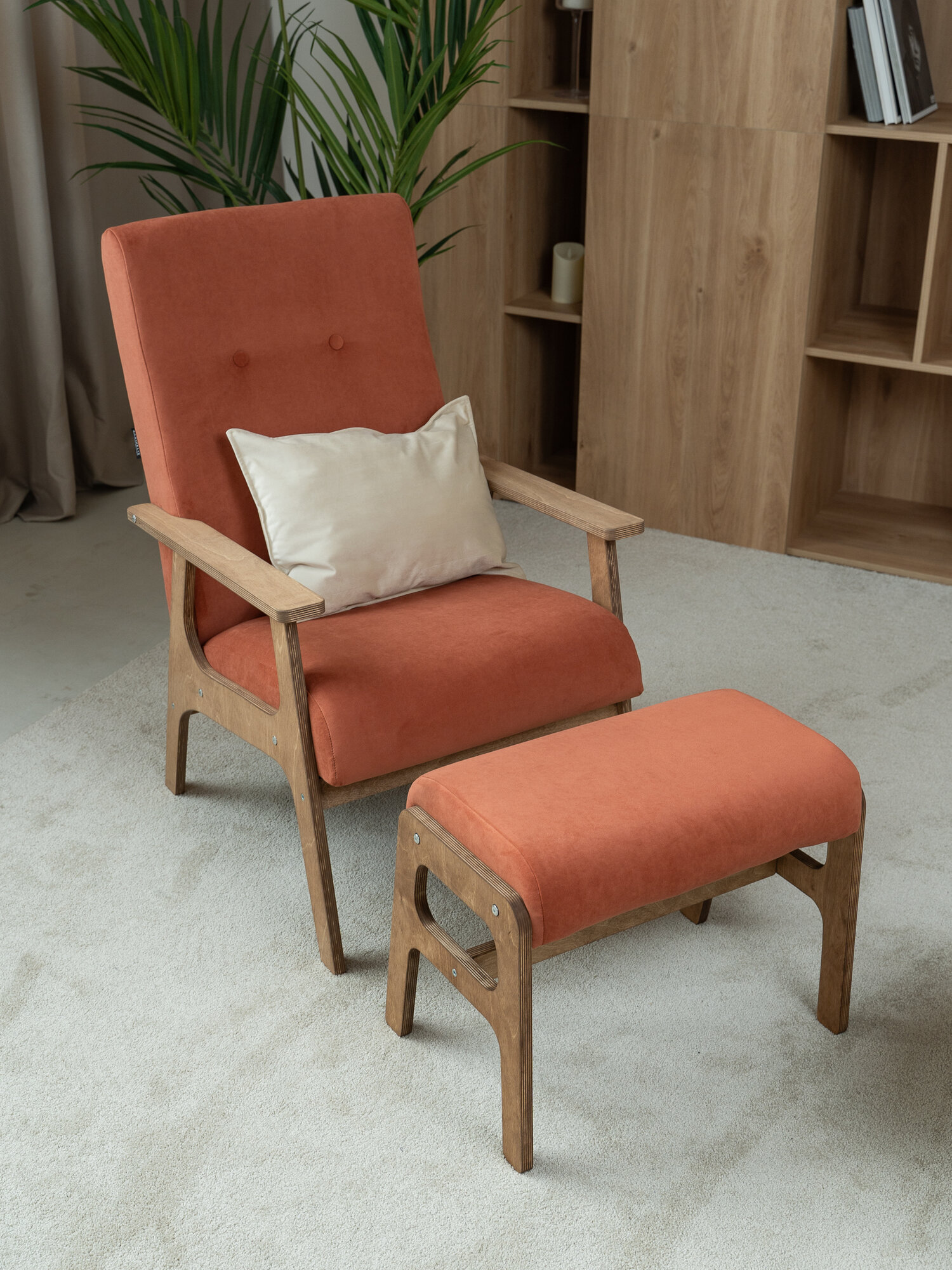 Пуф СHILL на ножках, банкетка, оранжевый,ноги коричневое масло