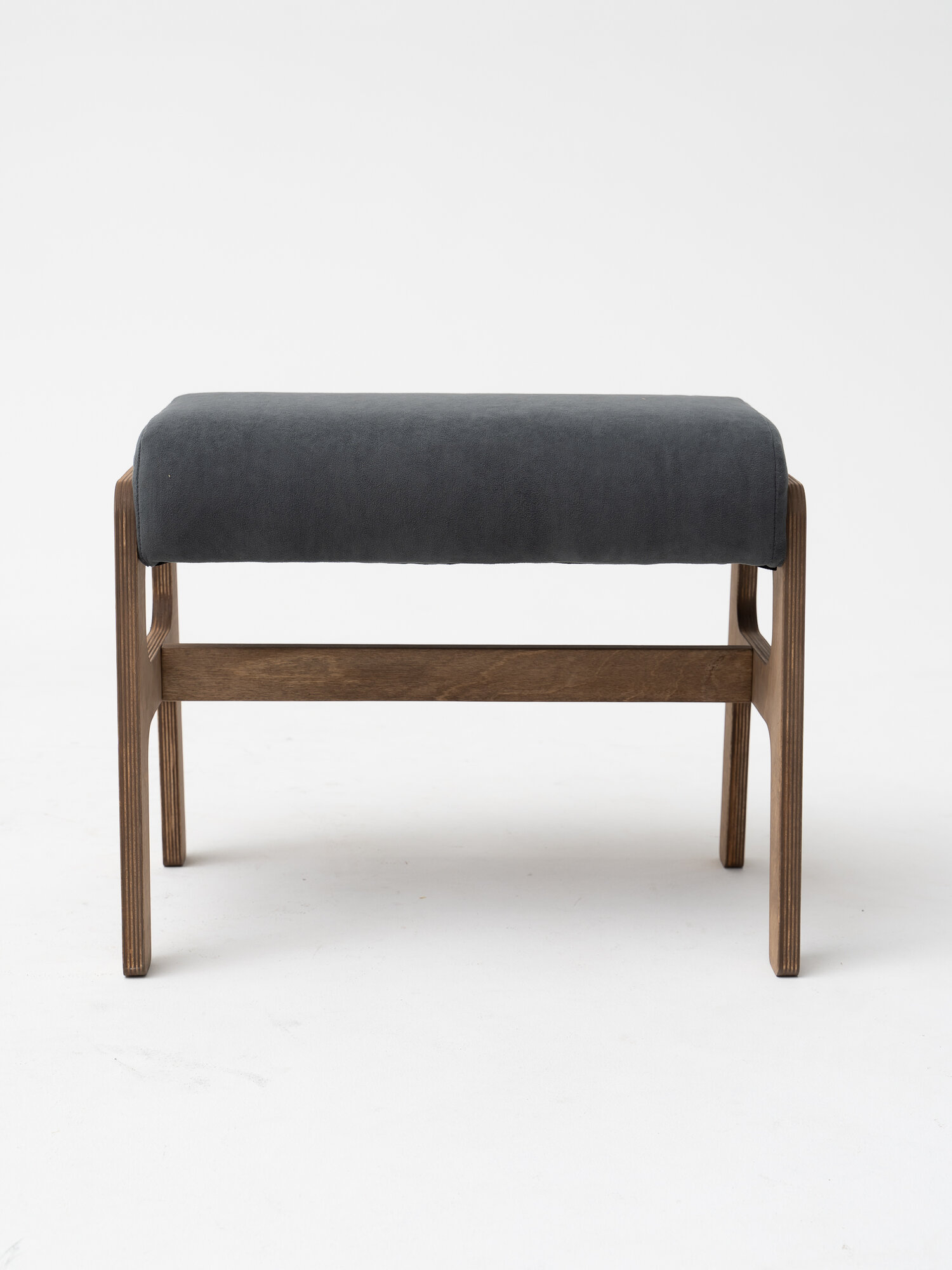 Пуф банкетка на ножках ZASIDELIS ЧИЛ для прихожей дома и офиса темно серый/коричневый, из велюра, 52х30х41 см, до 100 кг