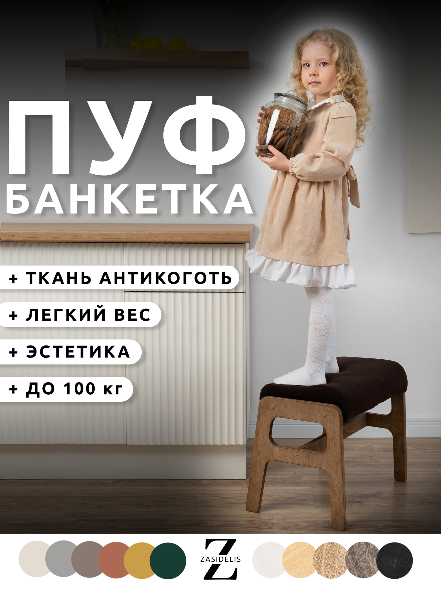 СохранитьПуф банкетка ZASIDELIS ЧИЛ для прихожей, на ножках, велюр, коричневый/коричневый, 31х52x41 см, до 100 кг интересное: