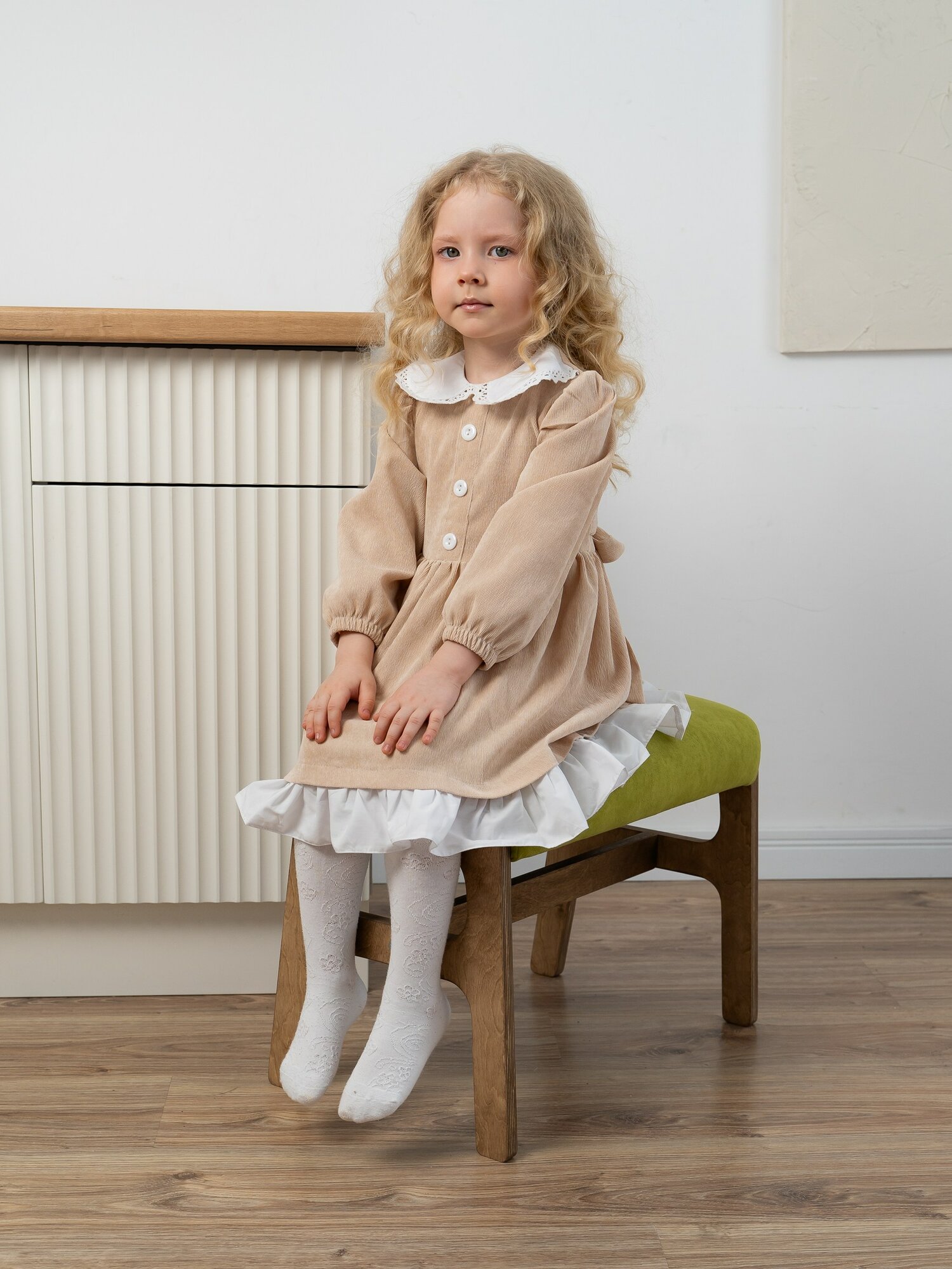 Пуф банкетка на ножках ZASIDELIS ЧИЛ для прихожей дома и офиса темно бежевый/белый, из велюра, 52х30х41 см, до 100 кг