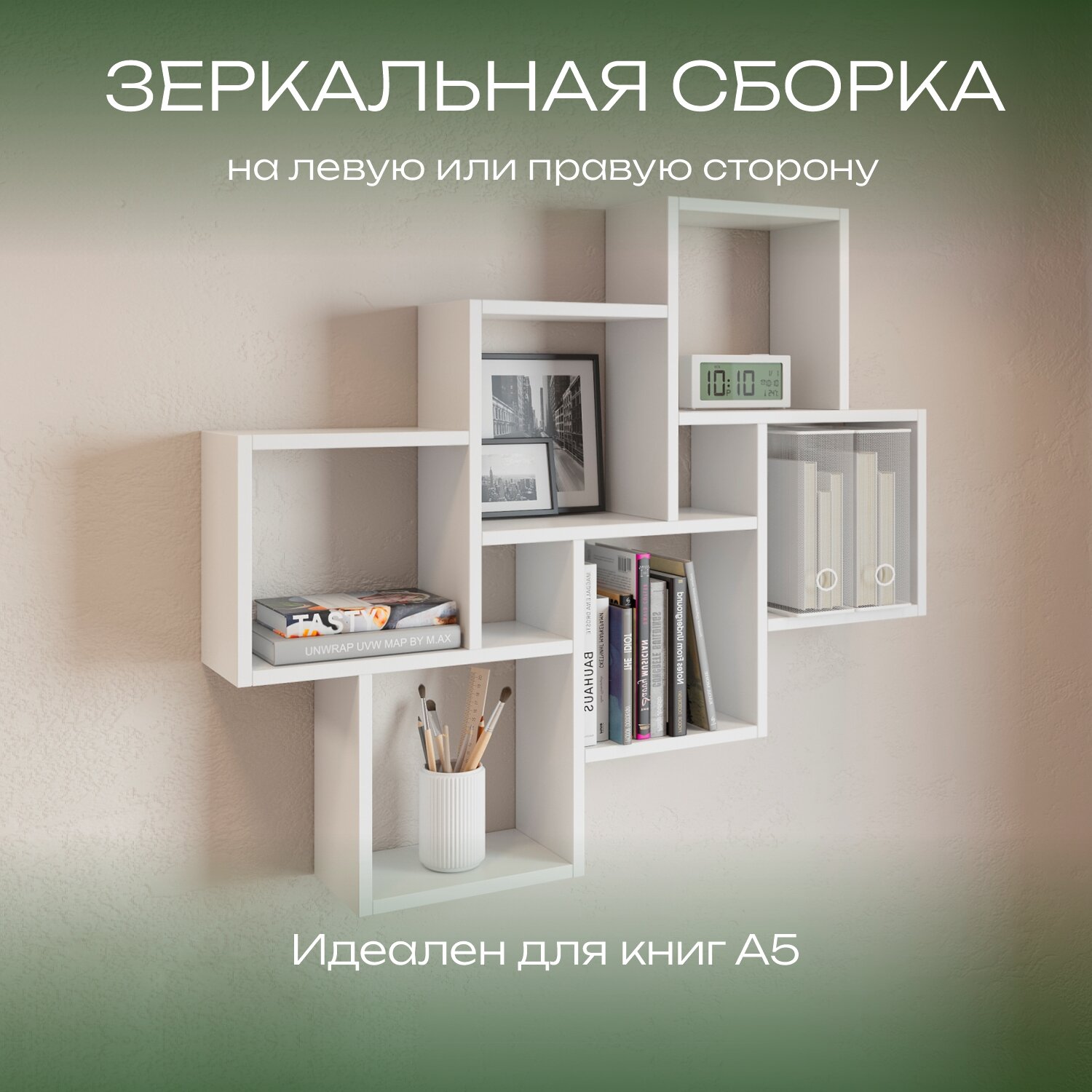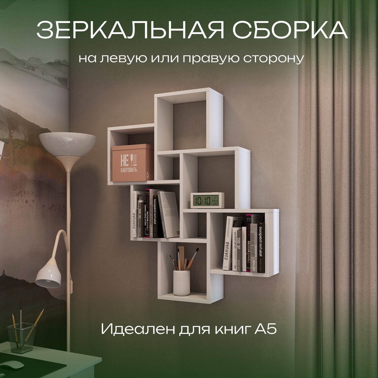 Mebelitto Полка "Квадро" настенная, деревянная для книг в гостиную и спальню / белая интересное: