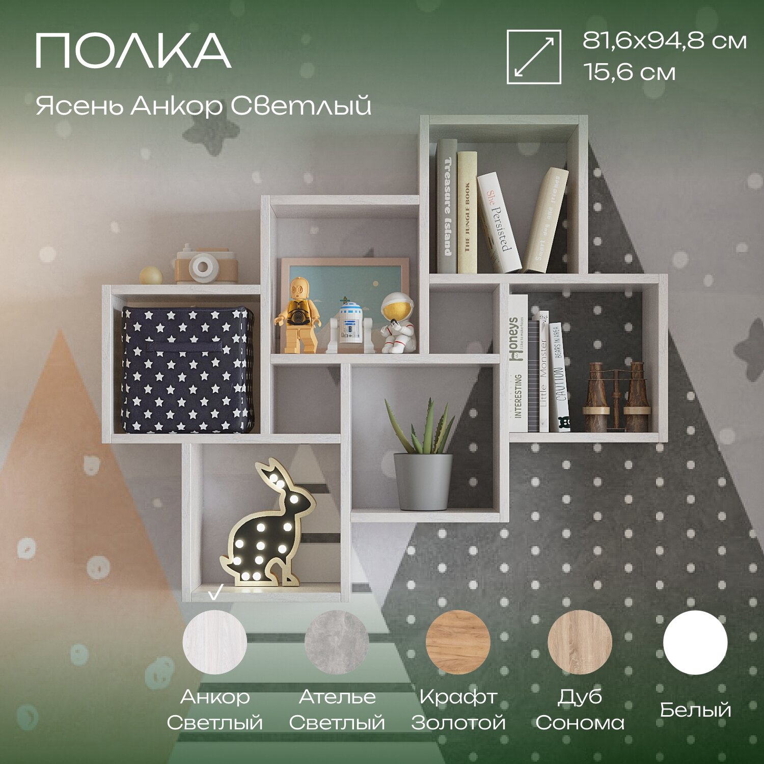 Купить Mebelitto Полка "Квадро" настенная, деревянная для книг в гостиную и спальню / Ясень Анкор Светлый