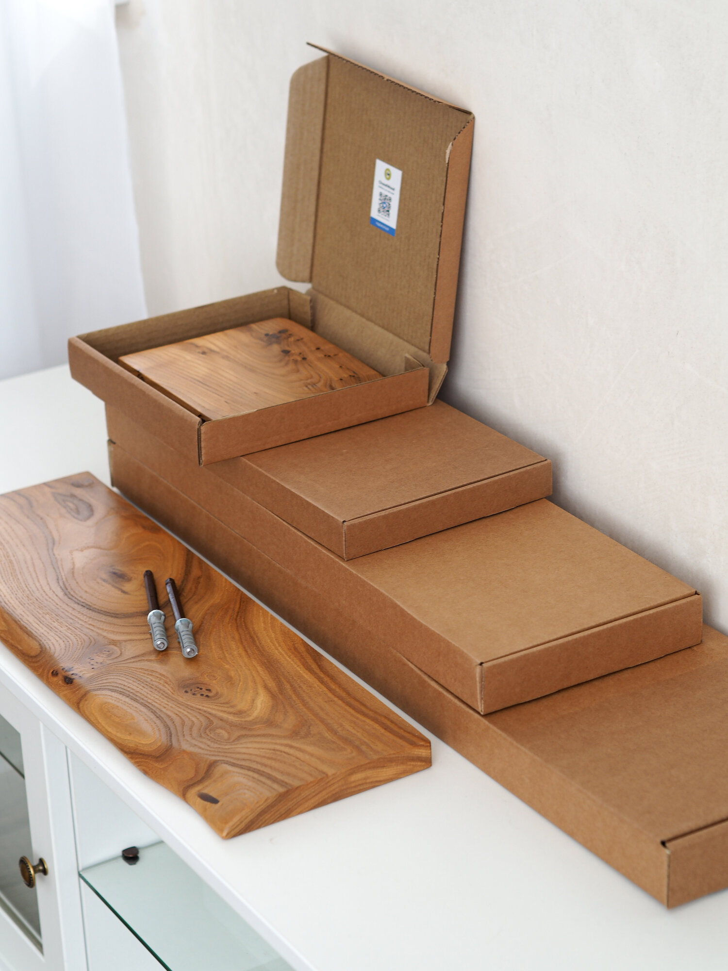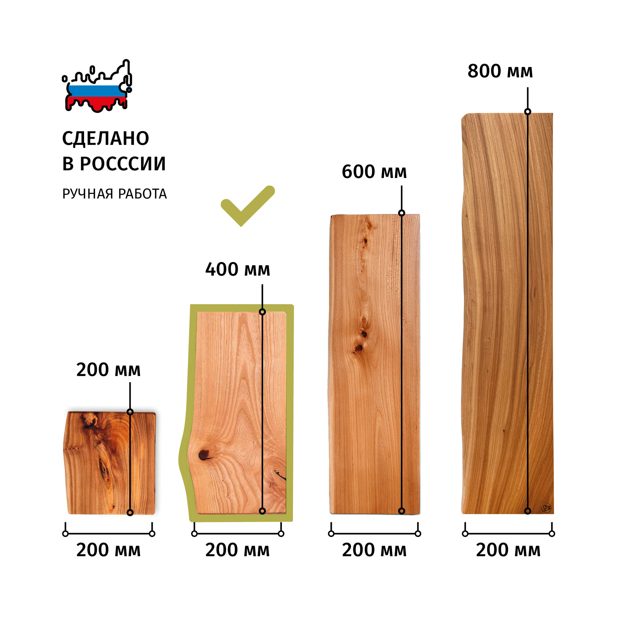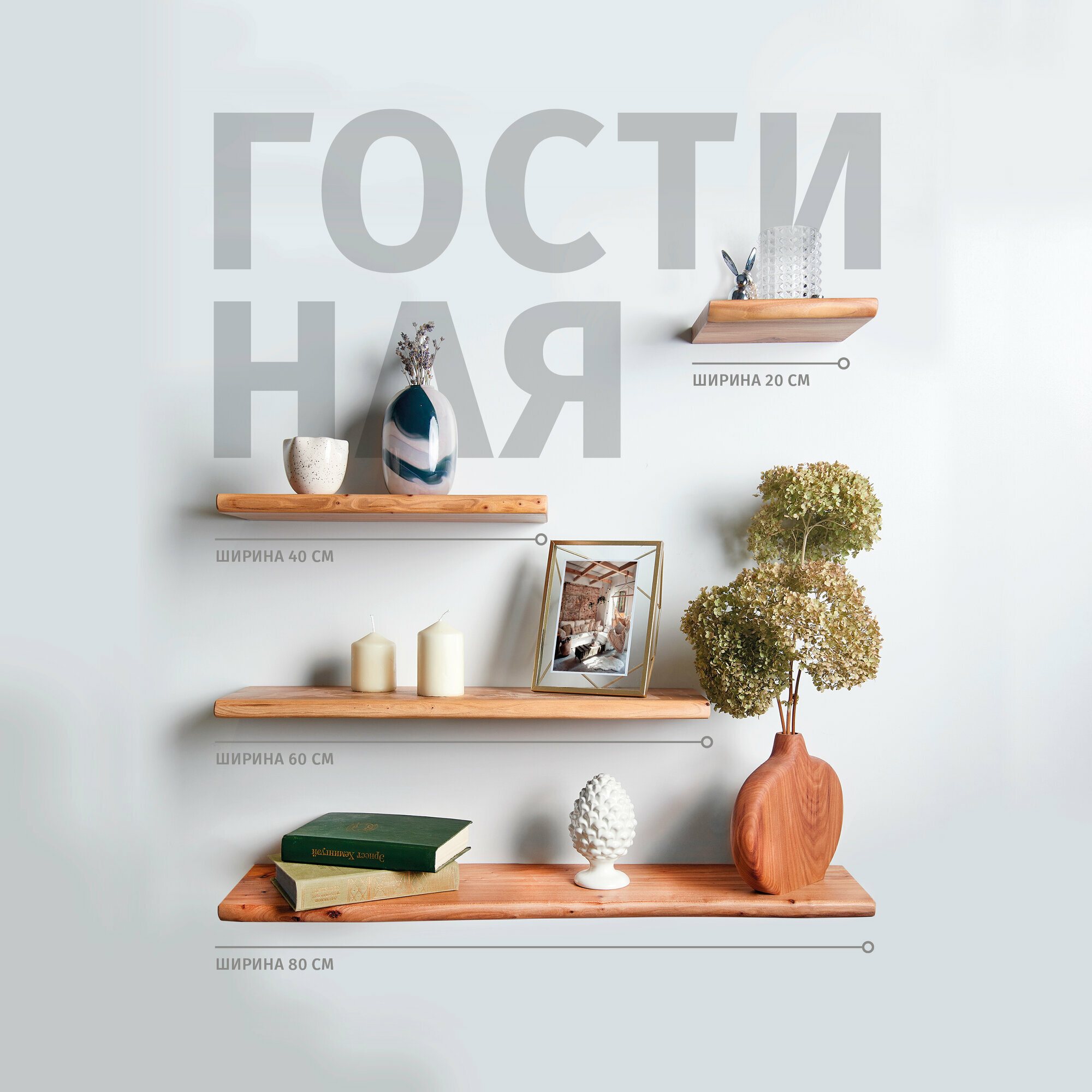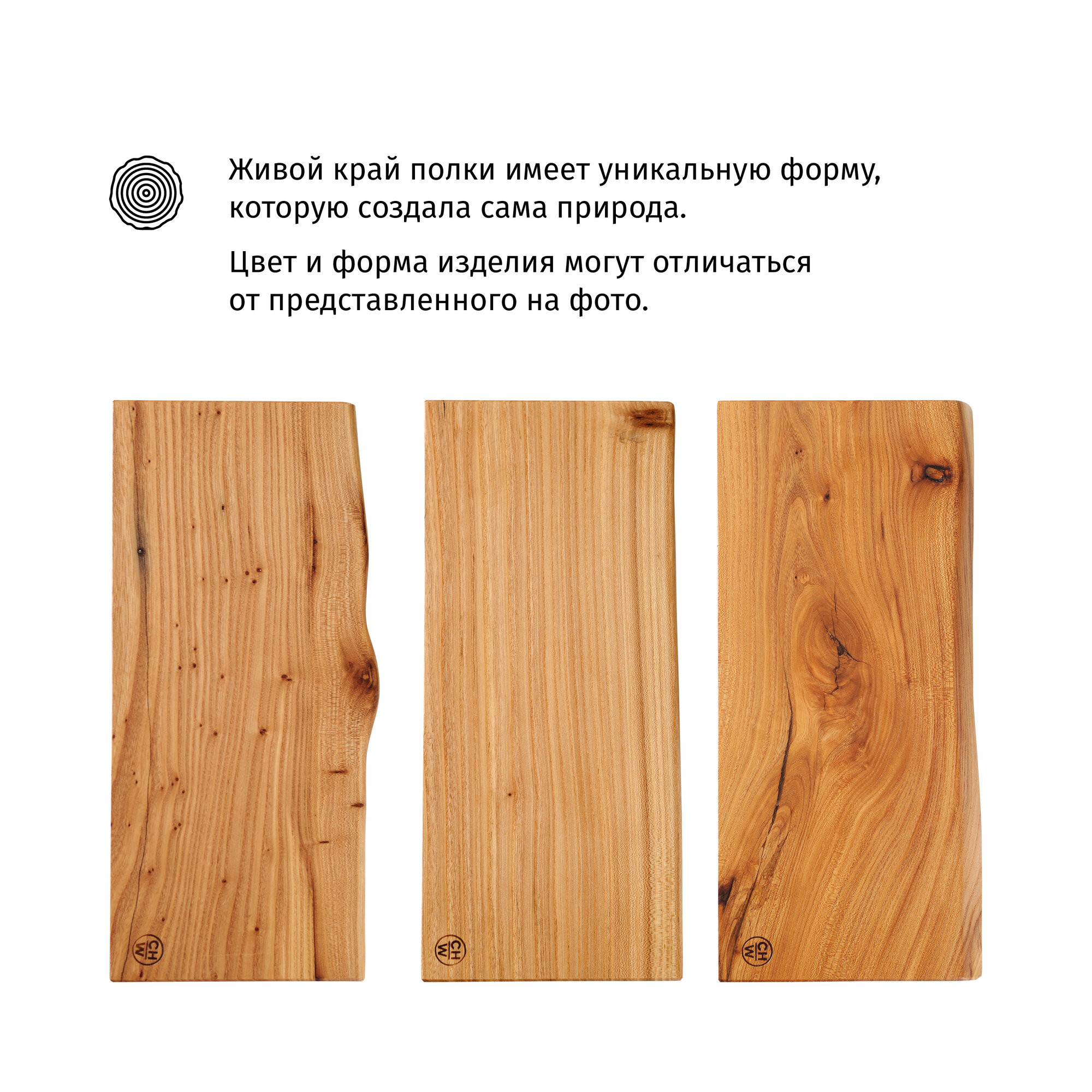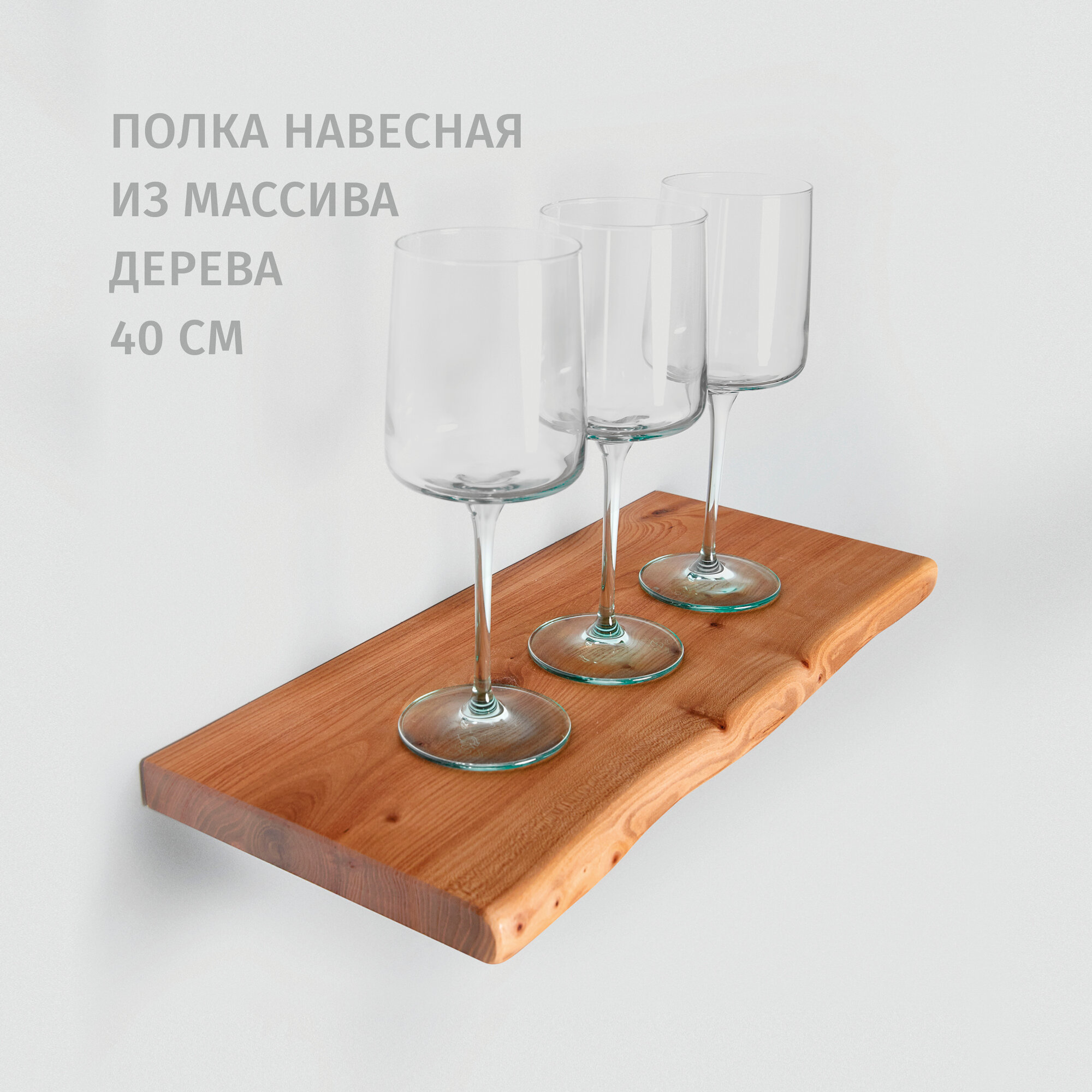 Полка настенная Choodwood 30-40см, подвесная, массив дерева карагач, скрытое крепление