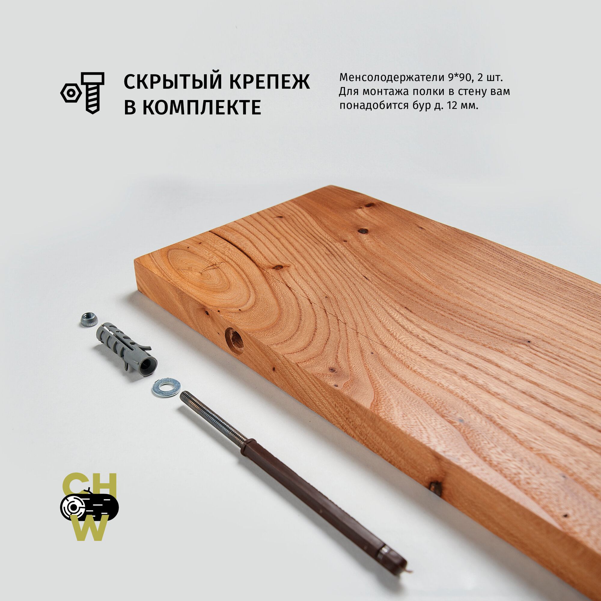 Полка для кухни ChoodWood 20 см, массив дерева карагач, скрытое крепление, навесная
