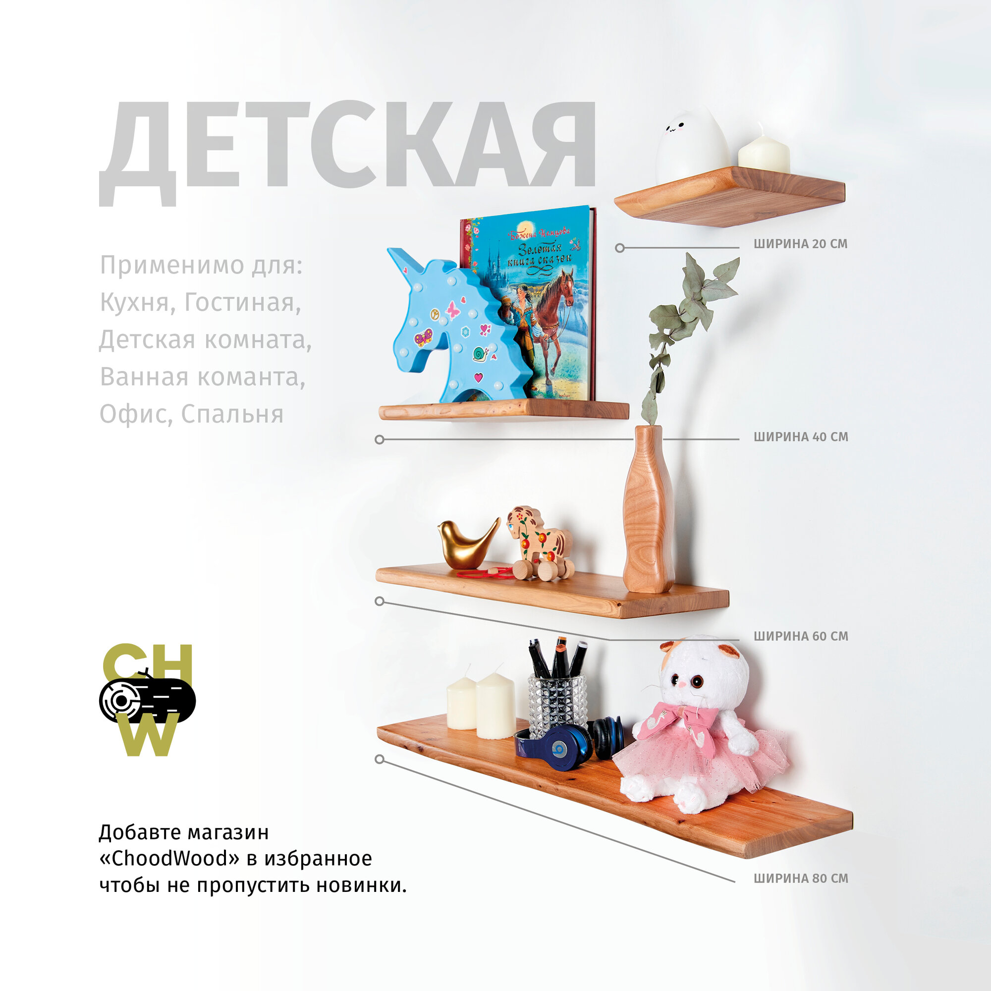 | Назначение | для ванной / для гостиной/спальни / для детской / для икон / для книг / для кухни / для прихожей / для роутера / для сауны/бани / для специй / для фоторамок и сувенирной продукции / универсальное |