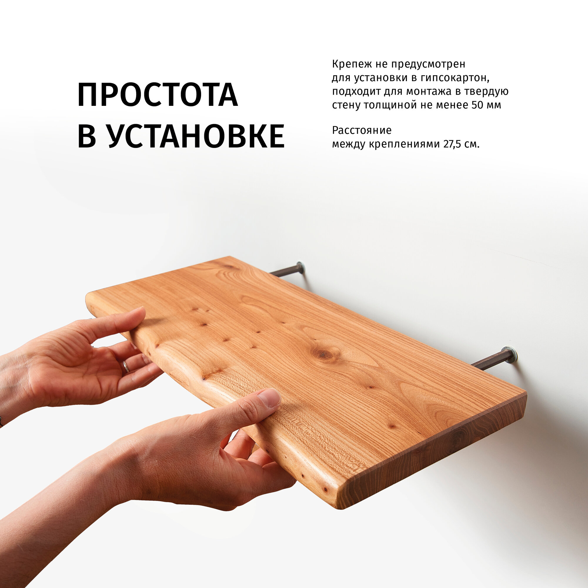 Купить Книжная полка ChoodWood 40 см, лофт, цельный массив карагача, навесная, скрытое крепление