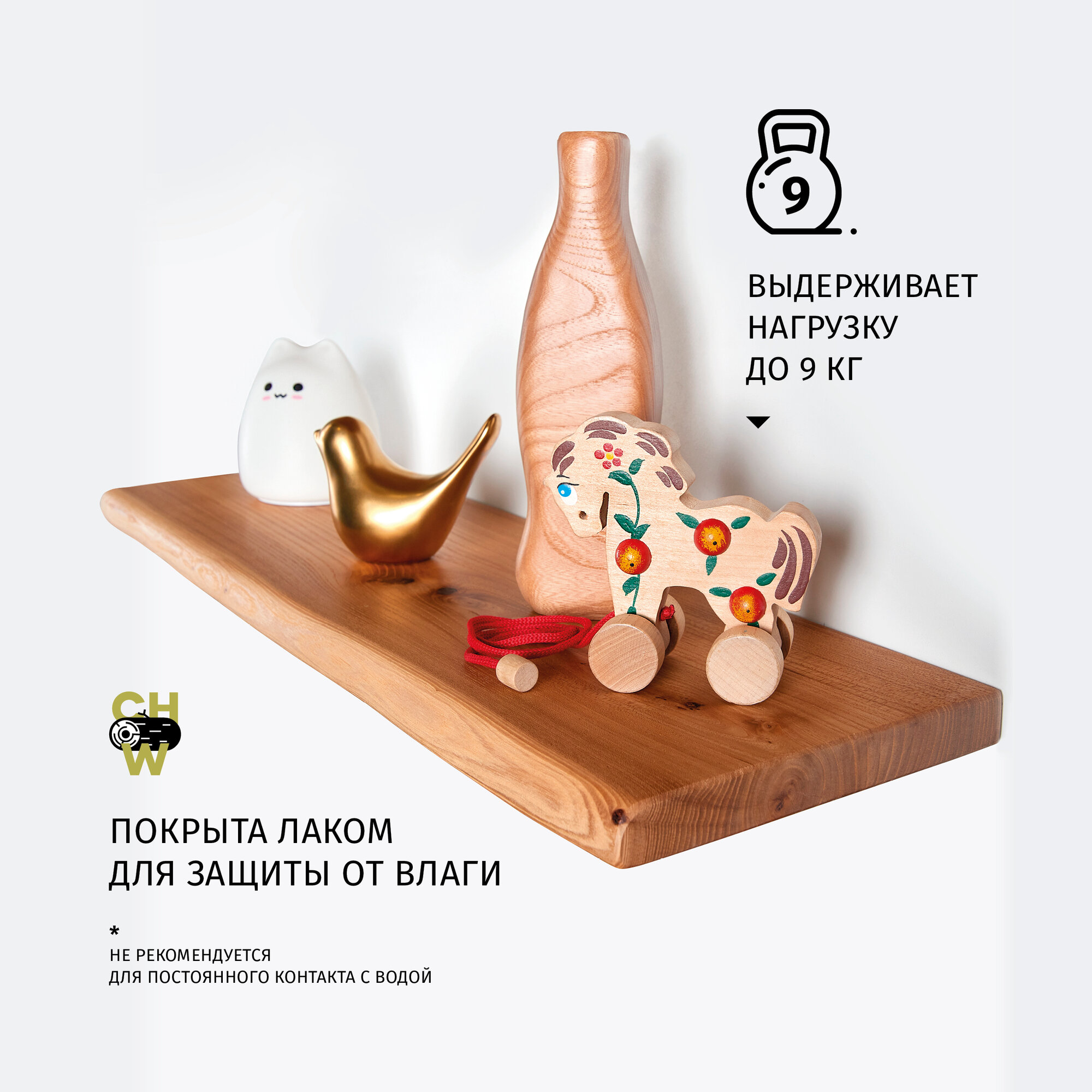Полка настенная ChoodWood 80х17х2 см, массив дерева, подвесная, скрытое крепление