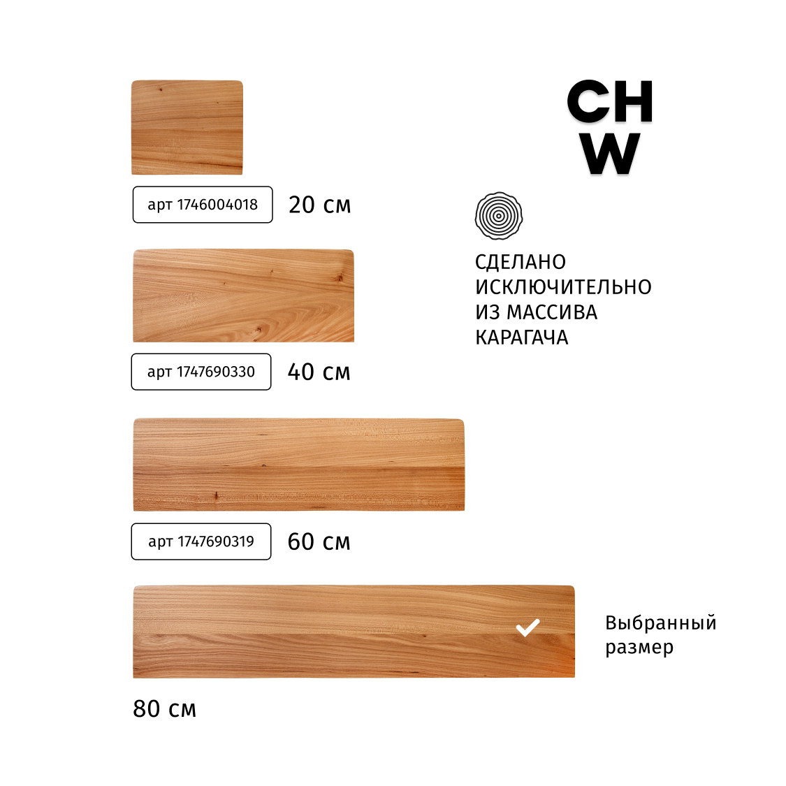 Полка настенная Choodwood 30-40см, массив дерева карагач
