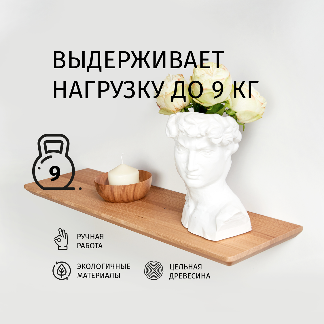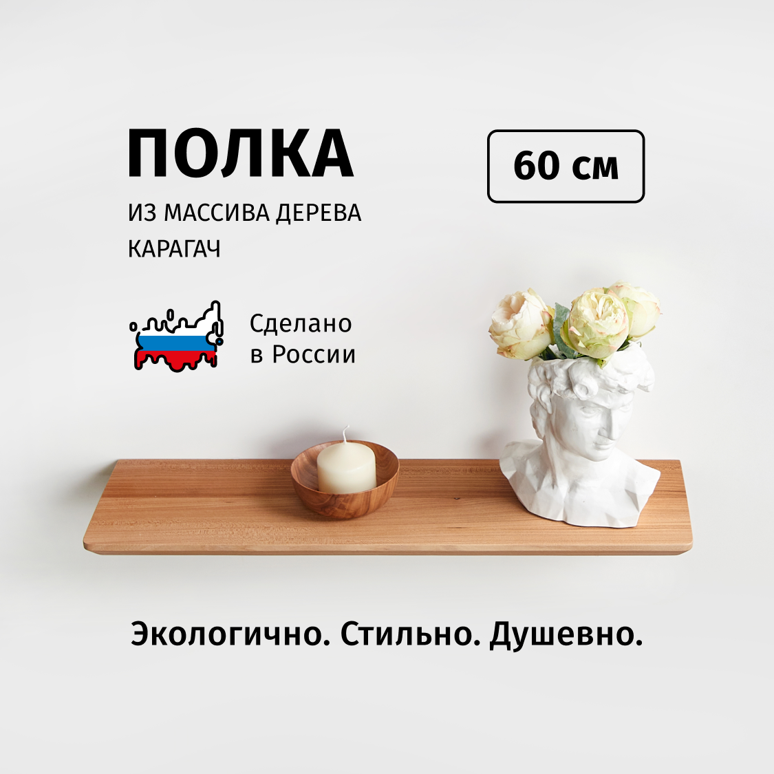 Полка настенная 60х20 см из дерева