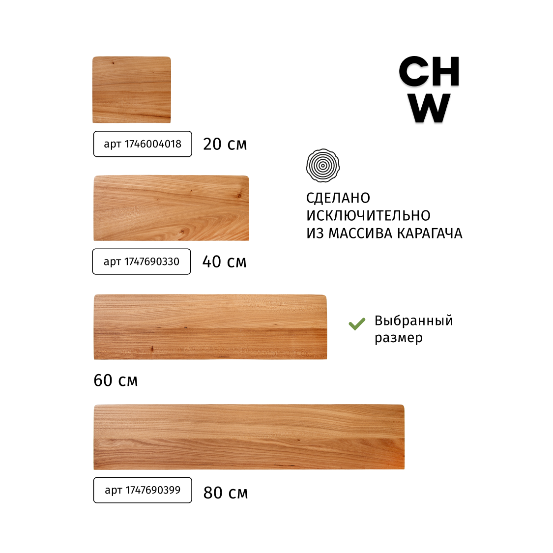 Полка настенная Choodwood 30-40см, массив дерева карагач