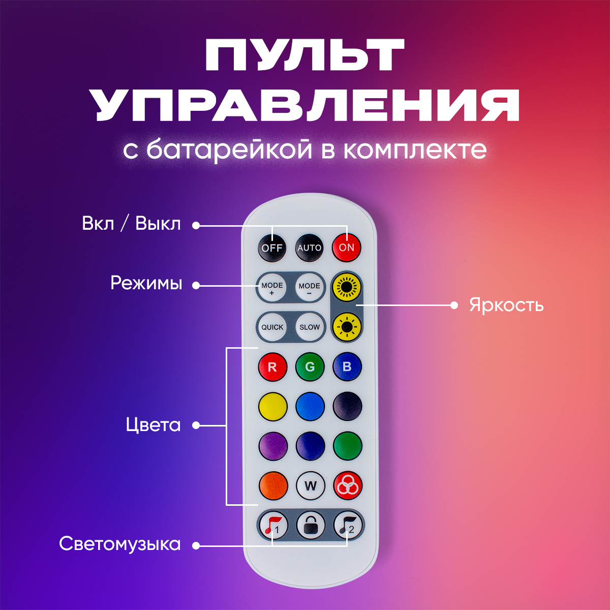 | Особенности | RGB-контроллер в комплекте / режим ночника / самоклеящаяся основа |