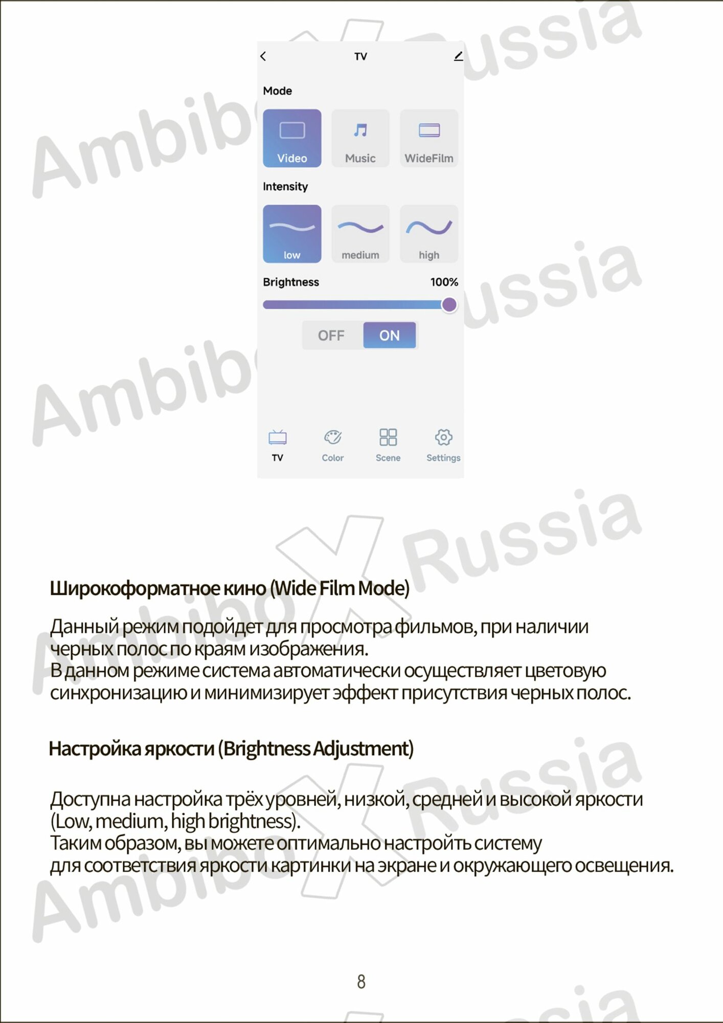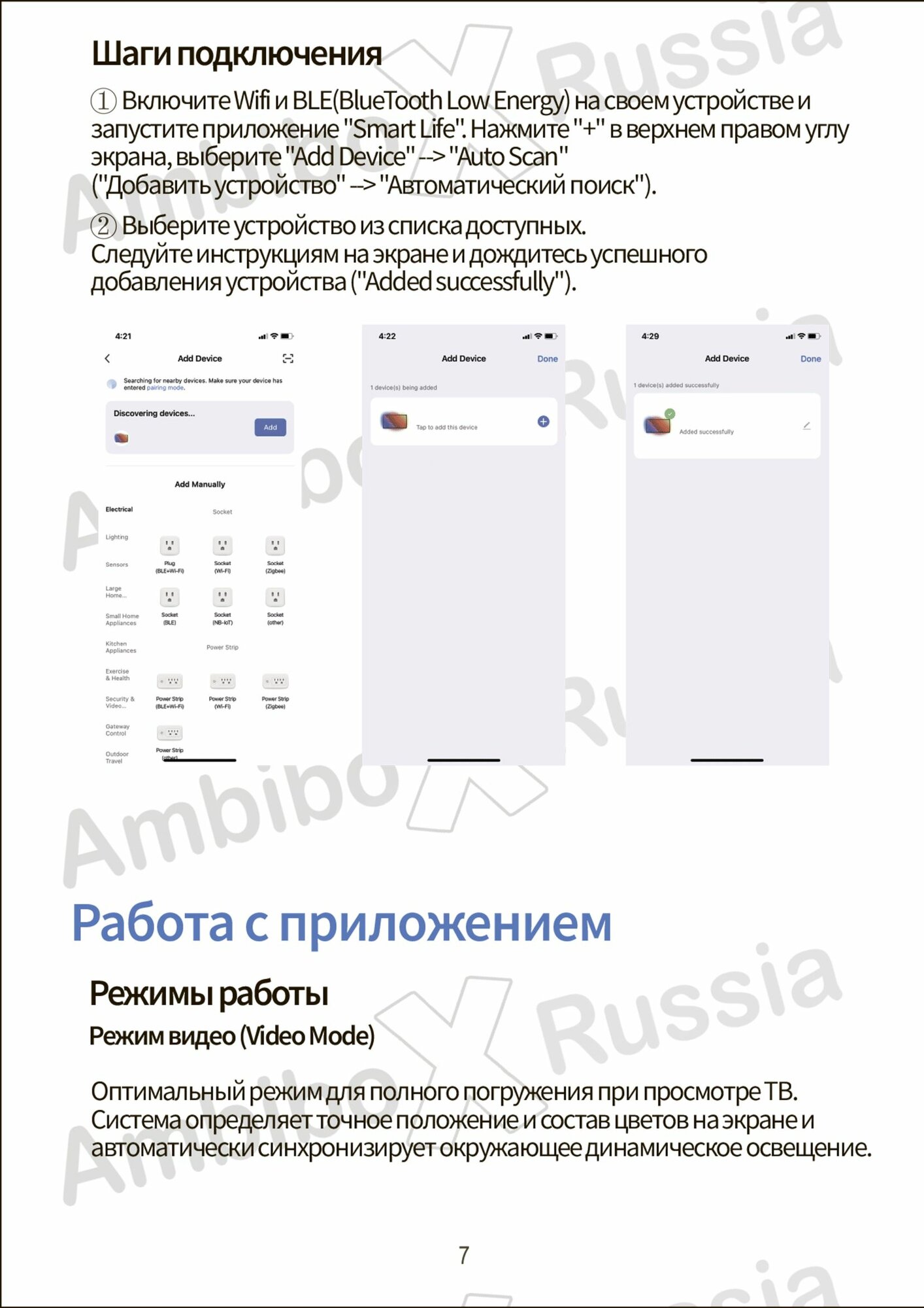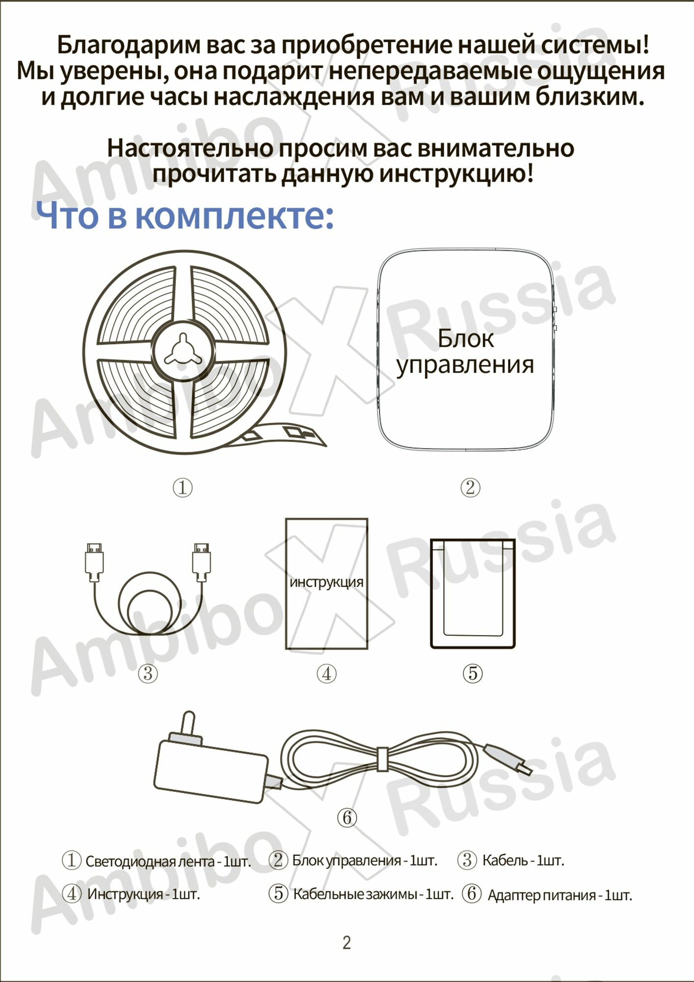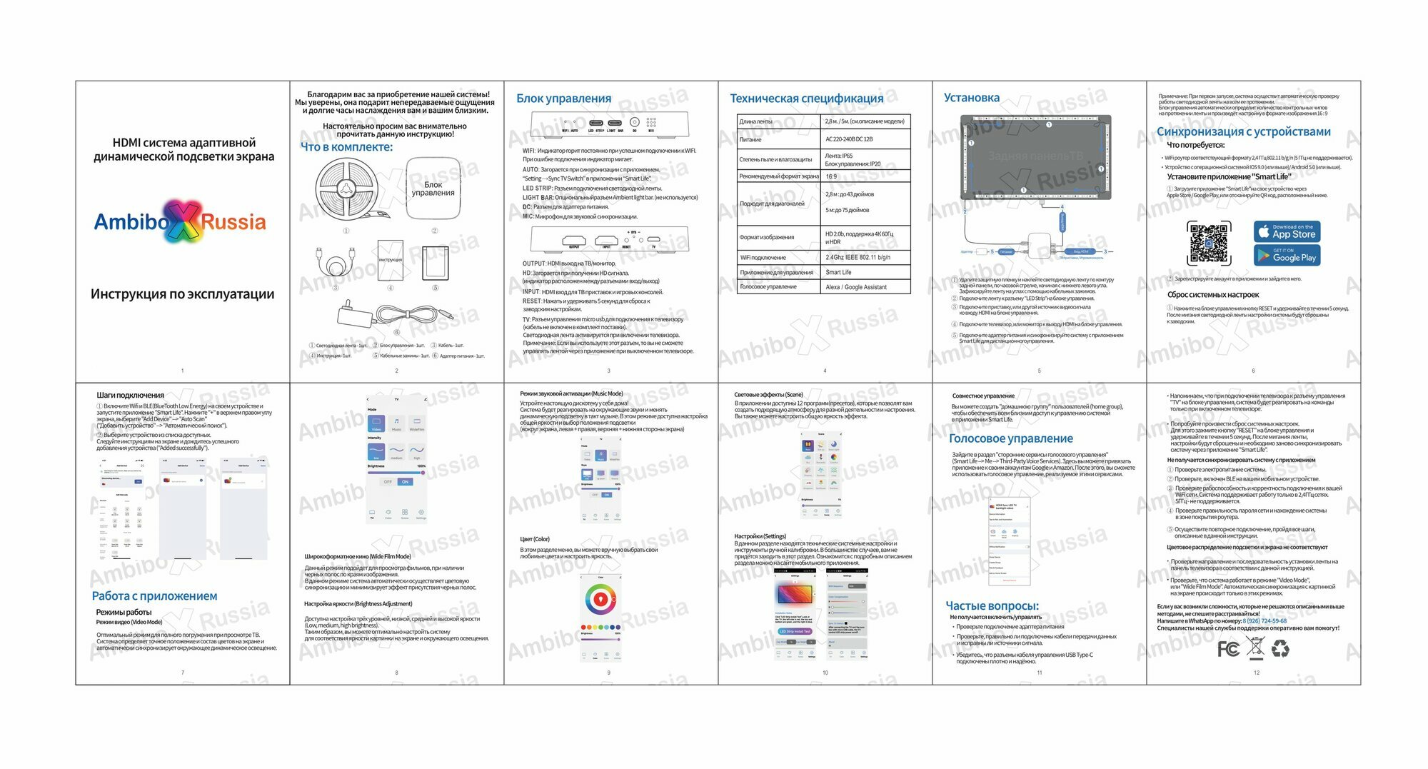 | Комплектация | Светодиодная лента (длина 4,4 м), компактный блок управления, адаптер питания 12В, инструкция по установке и настройке, HDMI кабель 1,5м., кабельные зажимы. |