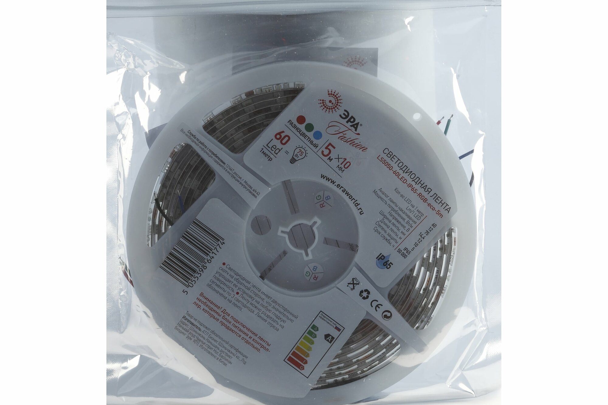 Светодиодная влагозащищенная лента ЭРА 14,4W/m 60LED/m 5050SMD RGB 5M LS5050-14,4-60-12-RGB-IP65-1 Б0002347 интересное: