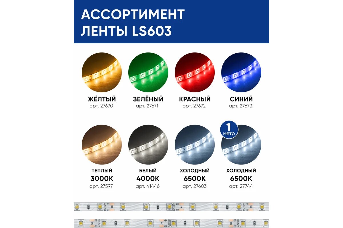 Лента светодиодная, 60SMD(2835)/m 4.8W/m 12V 5m 4000К , LS603