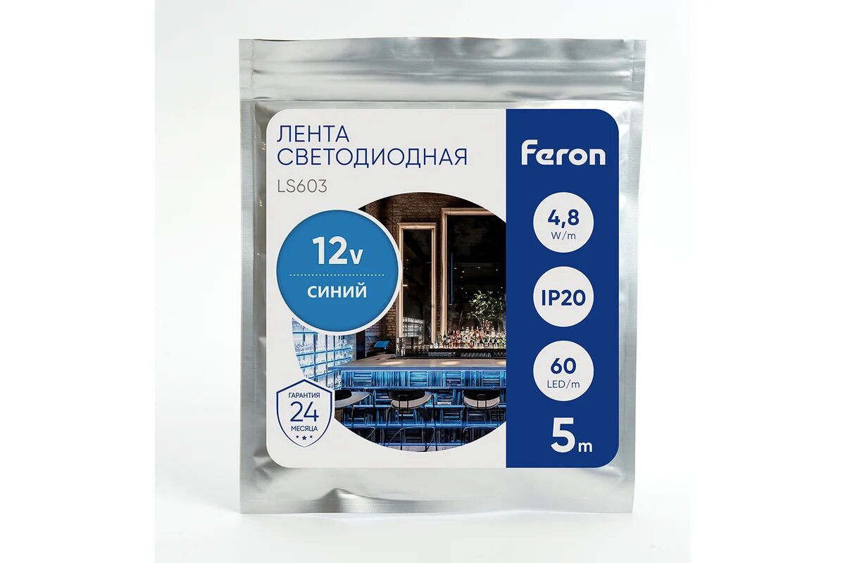 Cветодиодная LED лента LS603, 60SMD(2835)/м 4.8Вт/м 5м IP20 12V синий, FERON 27673 (1 шт.)