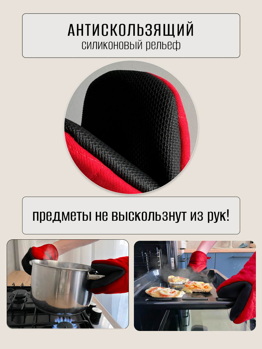 Прихватки кухонные набор 2 шт варежки универсальные красные интересное: