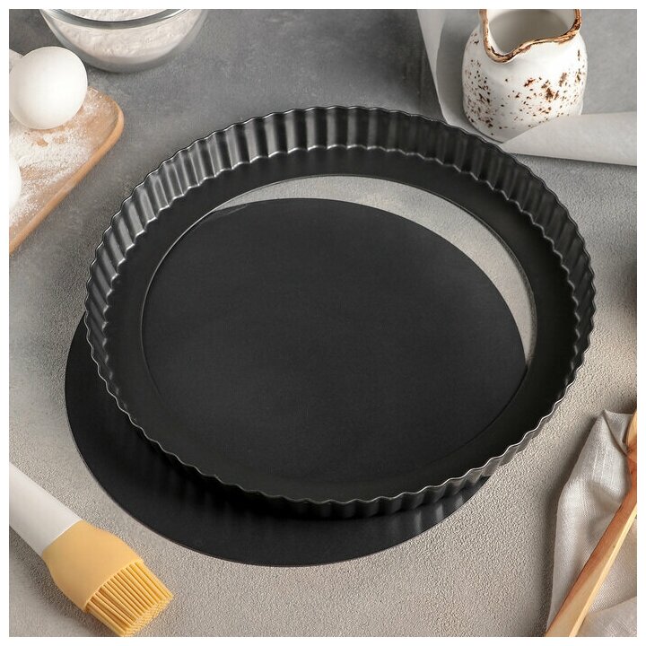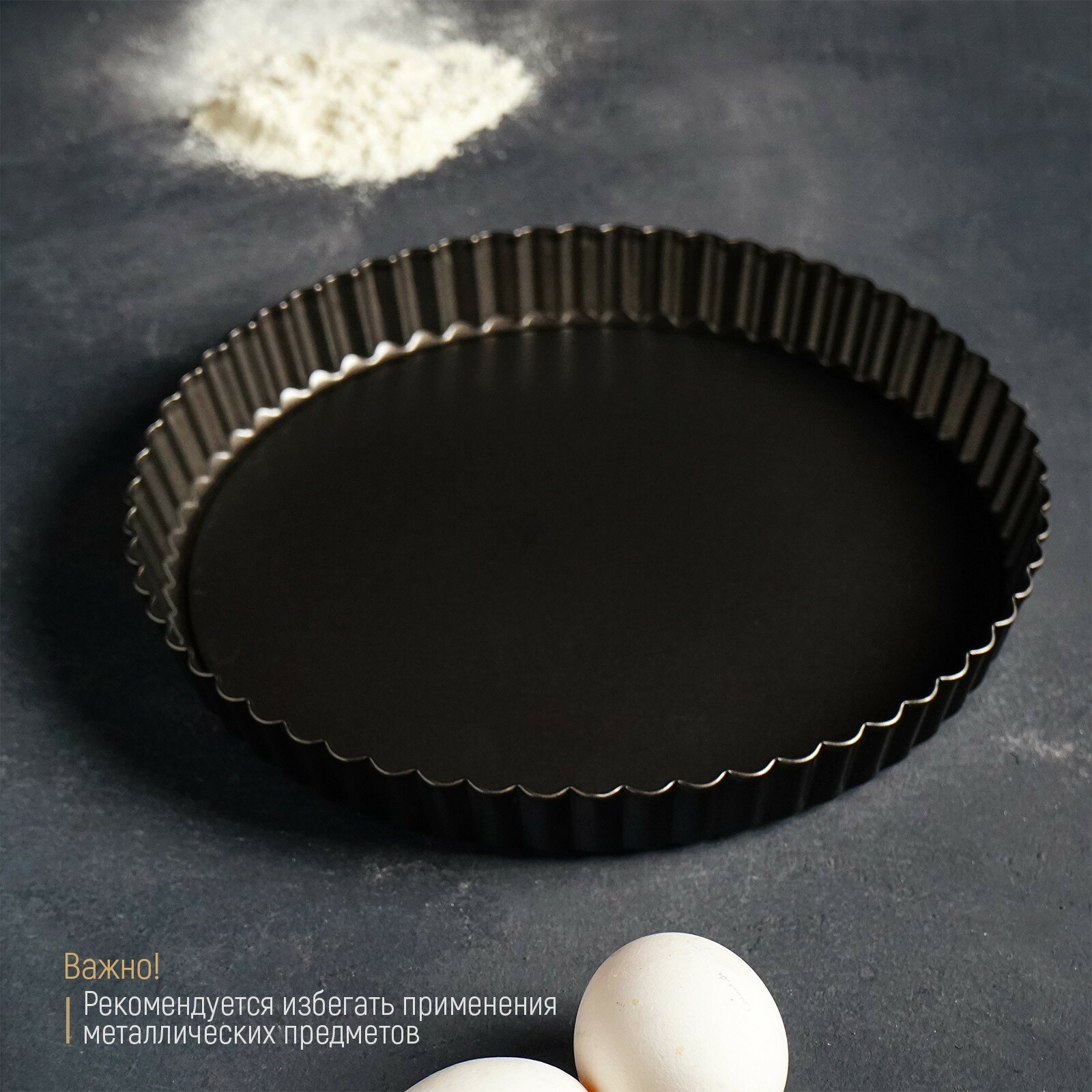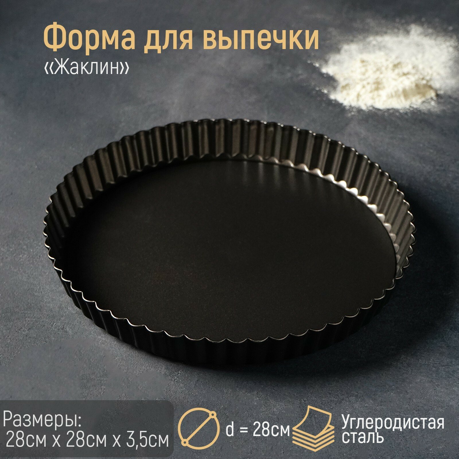 Форма для выпечки Доляна Жаклин. Рифлёный круг, 22 2,5 см, съёмное дно, антипригарное покрытие, цвет чёрный