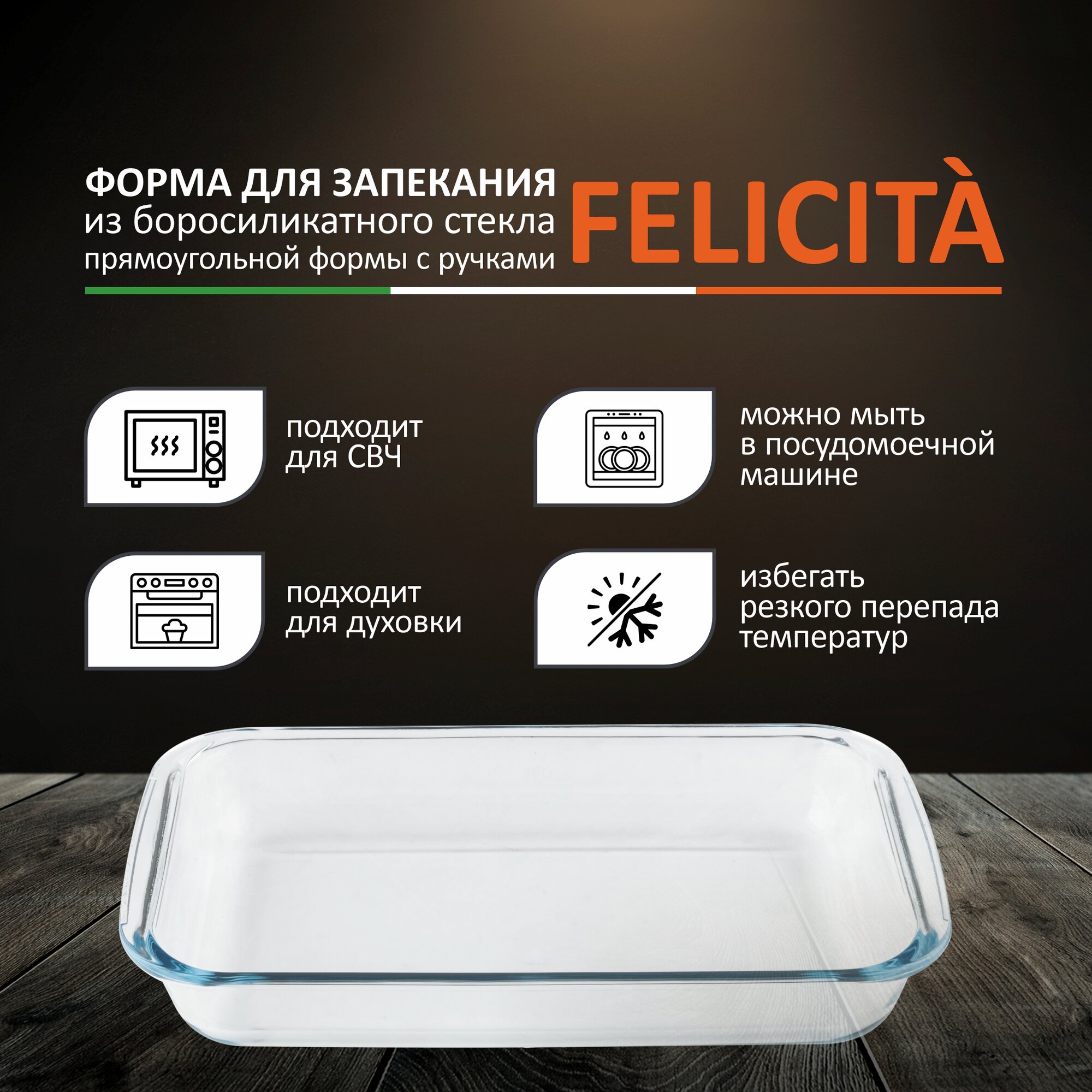 | Дополнительная информация | Форма для запекания Felicità, объем 2,2 л, из боросиликатного стекла, прямоуг формы, с ручками |