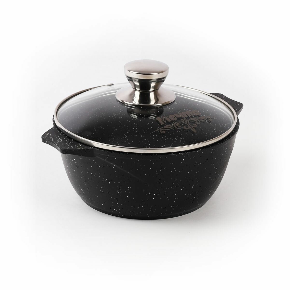 Кастрюля индукционная с антипригарным покрытием 2 л Мечта Гранит Black, со стеклянной крышкой