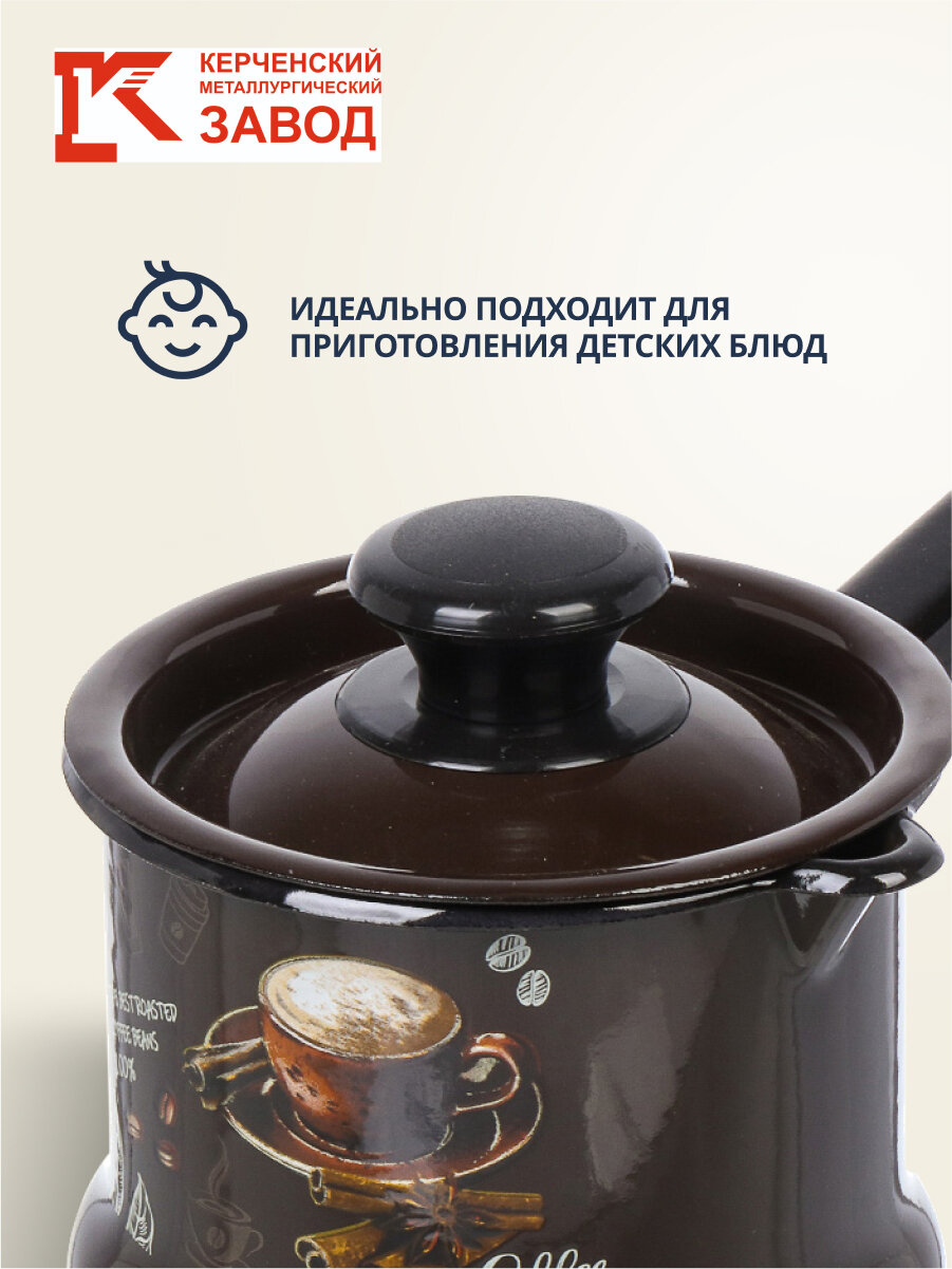 Ковш кухонный с крышкой из эмалированной стали 1 л, Керченский металлургический завод, Арабика интересное: