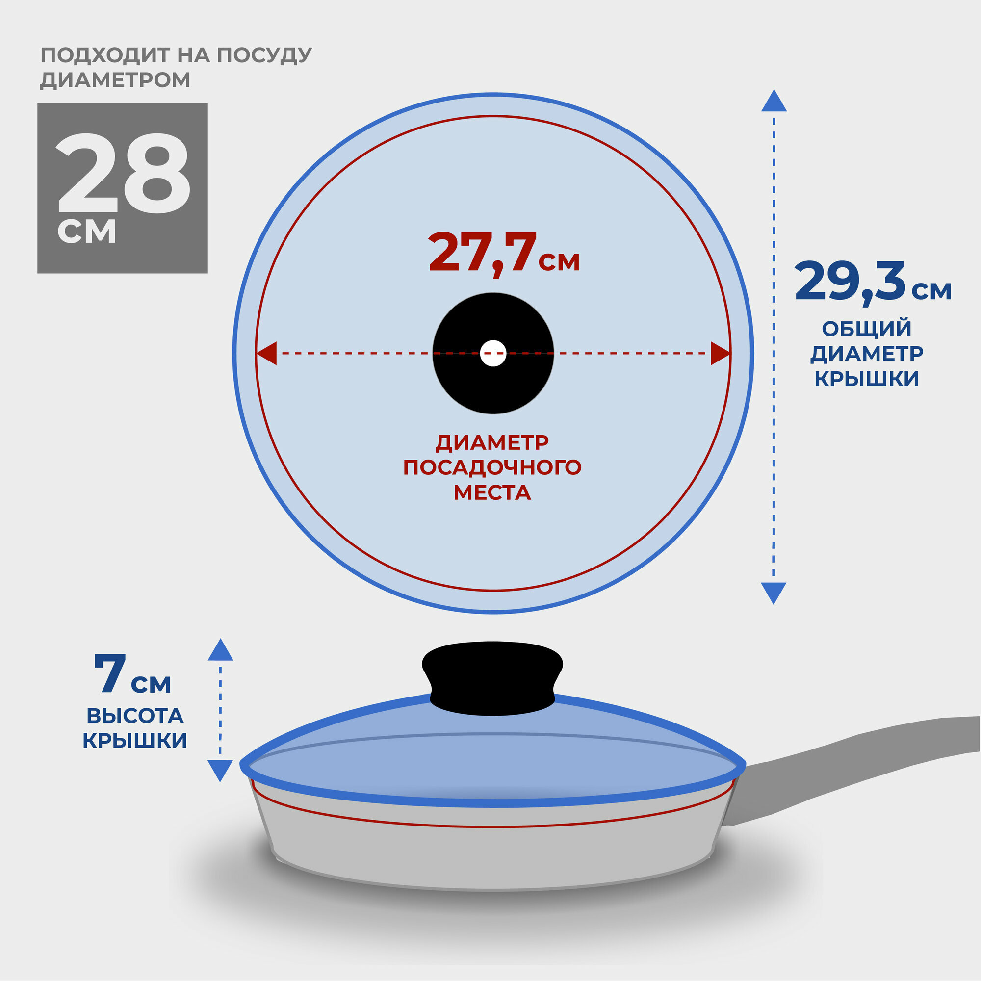 СохранитьКрышка для сковороды 28 см, стеклянная крышка для кастрюли 28 см, ненагревающаяся ручка, Hitt интересное: