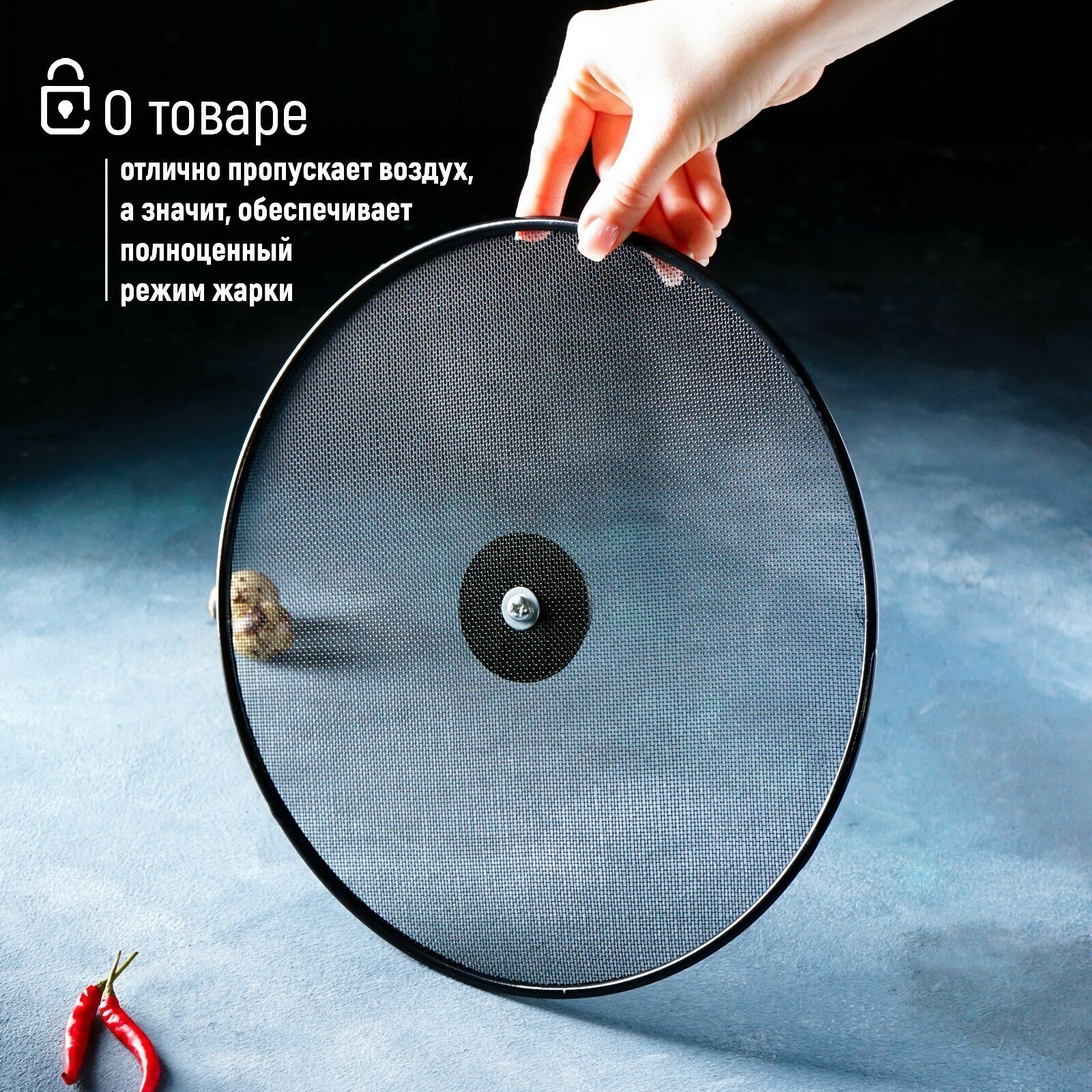 | Дополнительная информация | В отличие от обычной крышки сетка экран отлично пропускает воздух, а значит, обеспечивает полноценный режим жарки. Любителям хрустящих корочек это, безусловно, придется по вкусу. |