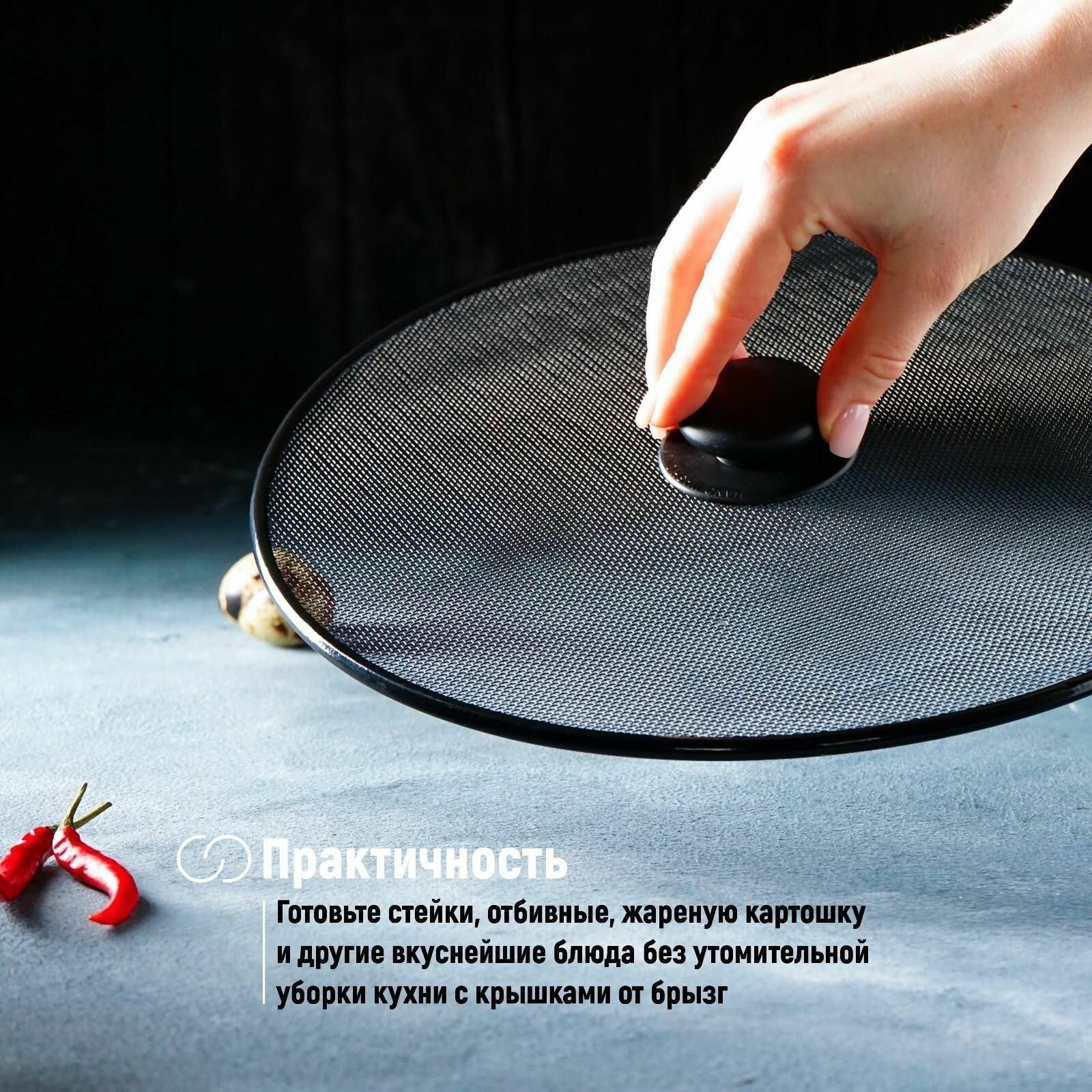 Экран крышка от брызг с ручкой Доляна, d=33 см, нержавеющая сталь