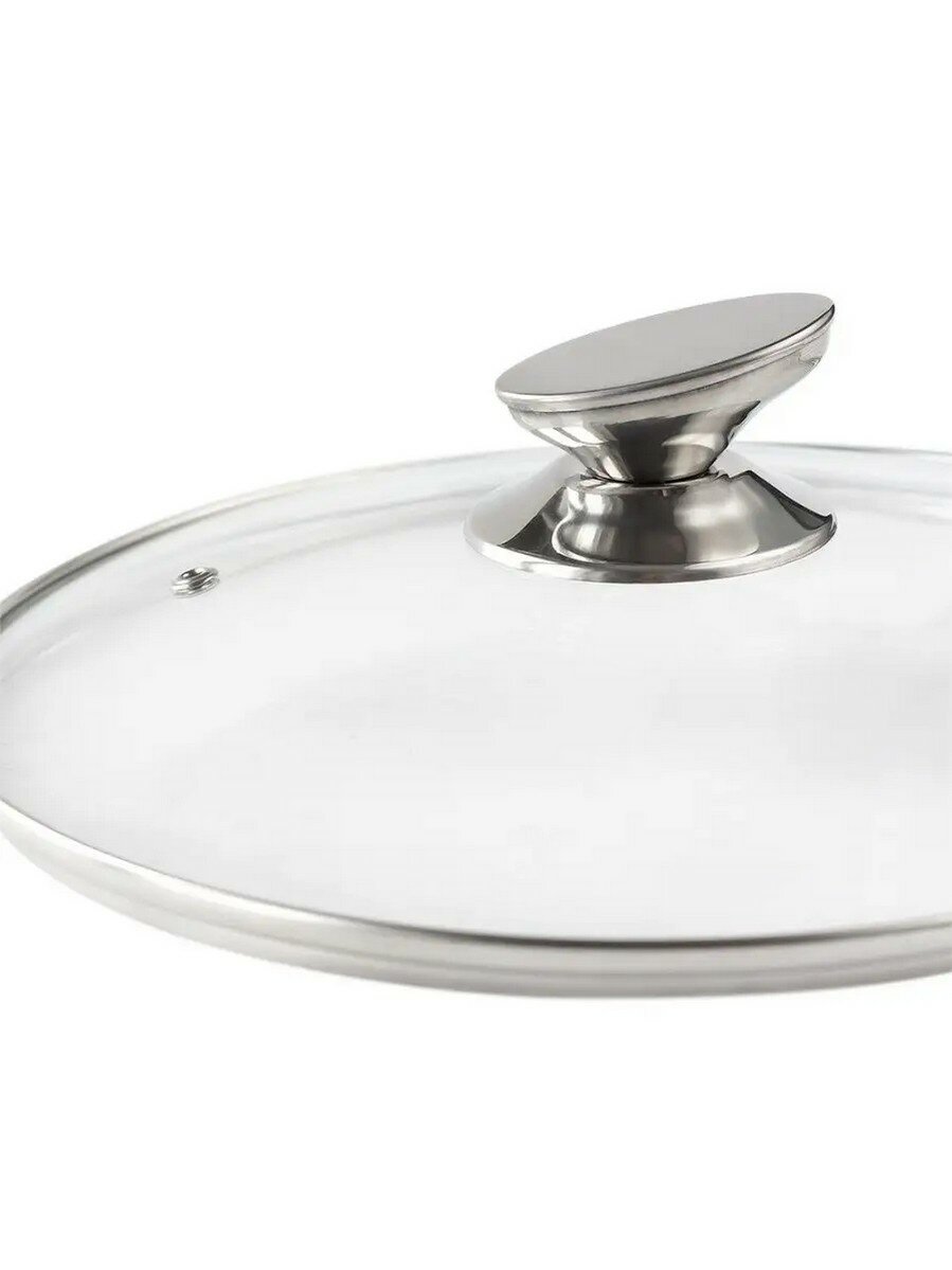 Крышка стеклянная TimA с металлическим ободком и овальной ручкой (нержавеющая сталь), пароотвод, диаметр 22см