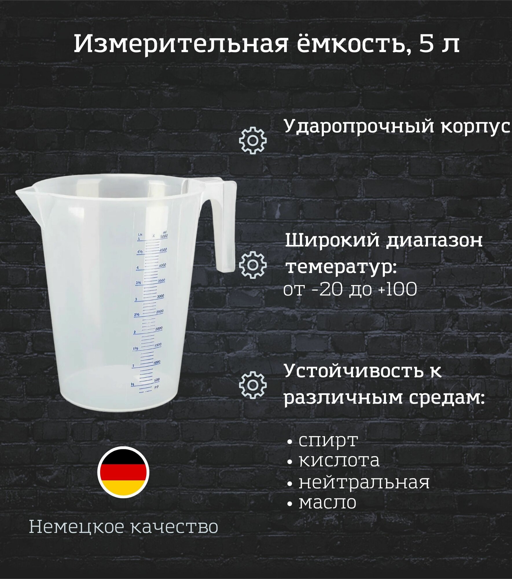 Купить Измерительная емкость из полипропилена 5 литров прозрачная PRESSOL / мерная емкость / мерный стакан