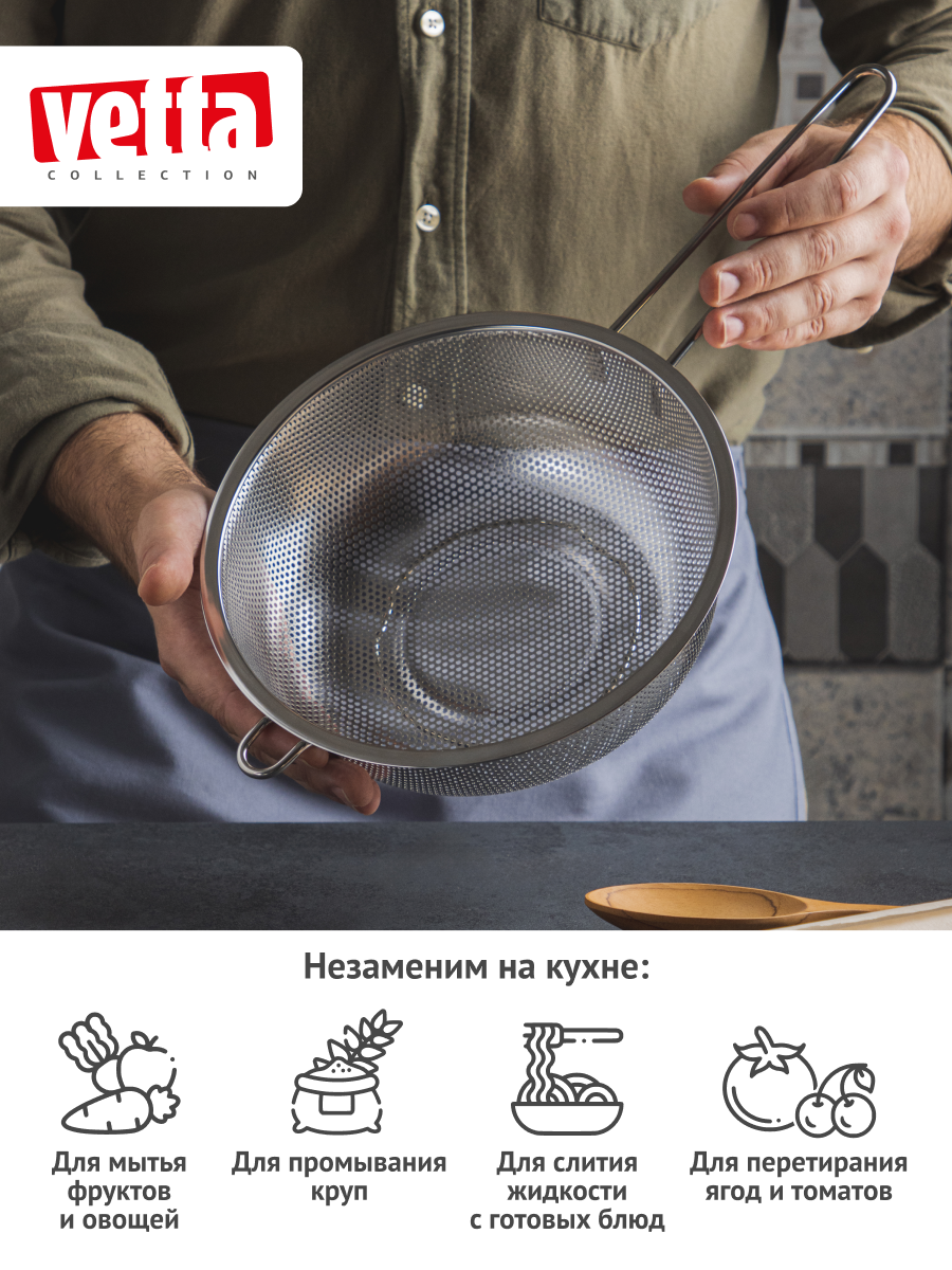 Дуршлаг с ручкой VETTA, 22 см, нержавеющая сталь, серебристый интересное: