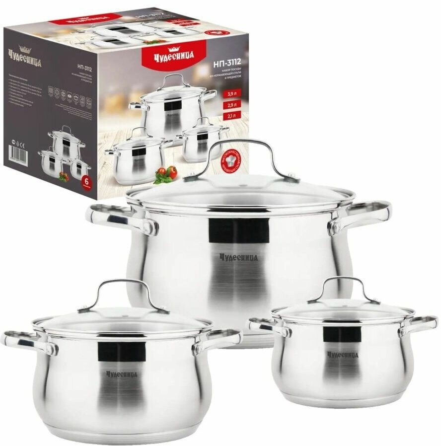 Набор кастрюль Чудесница НП-3102 из нержавеющей стали, 6 предметов