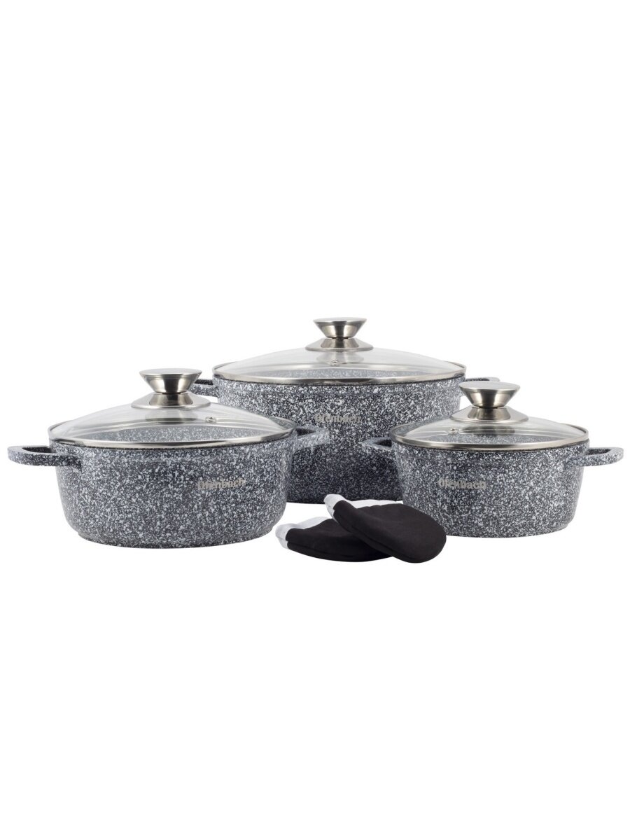 Набор посуды 9 предметов Ofenbach NB 100505 ковш 16 см; кастрюли 16 см; 20 см; 24 см; прихватки 2 шт. (серый)