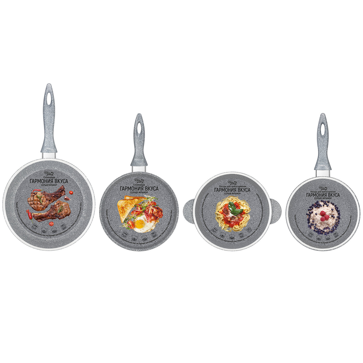 Купить Набор 4 пр. Elan Gallery гармония вкуса Серый мрамор Кастрюля 3л, ковш 1,5л, сковорода 24см, сковорода 20см, 3 крышки