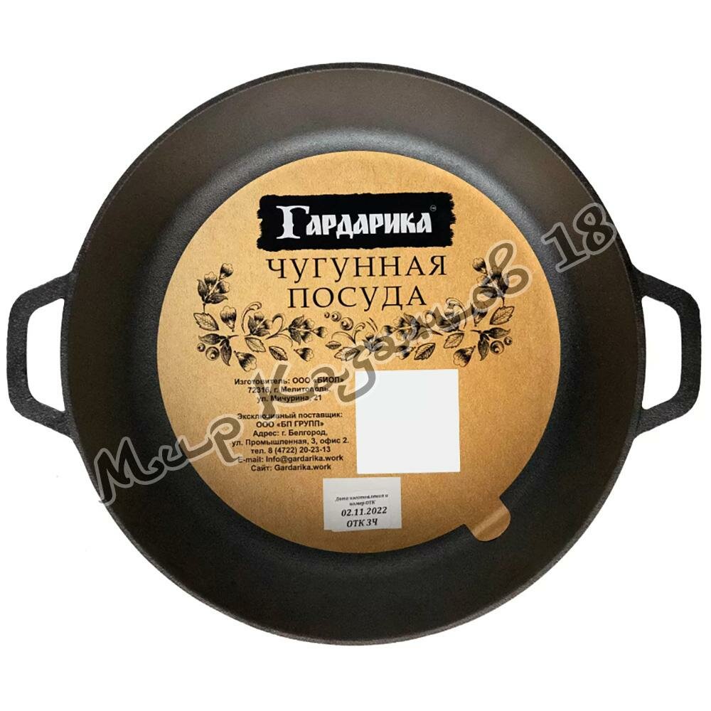 Сковорода Вок чугунная 28 см с двумя ручками Гардарика
