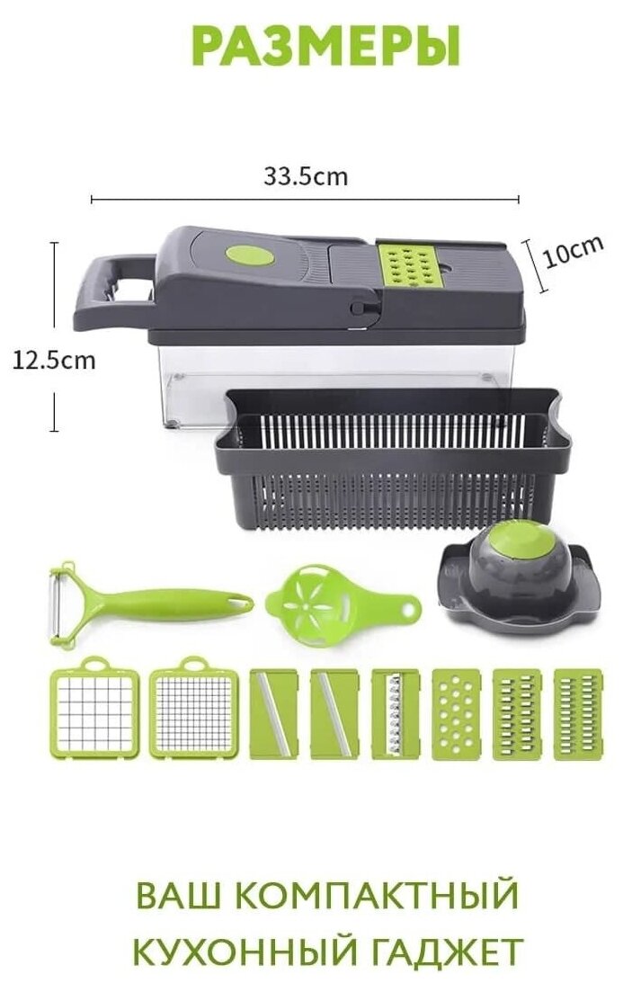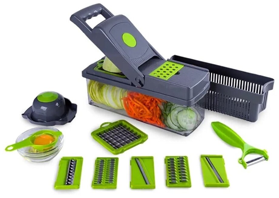 Купить Многофункциональная овощерезка 14 в 1/ измельчитель с контейнером и набором насадок/ дуршлаг