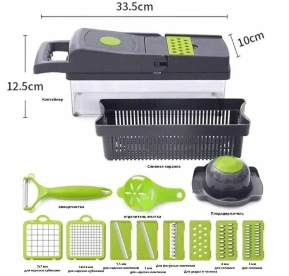 Овощерезка Veggie Slicer слайсер со съемным контейнером 14 в 1 интересное: