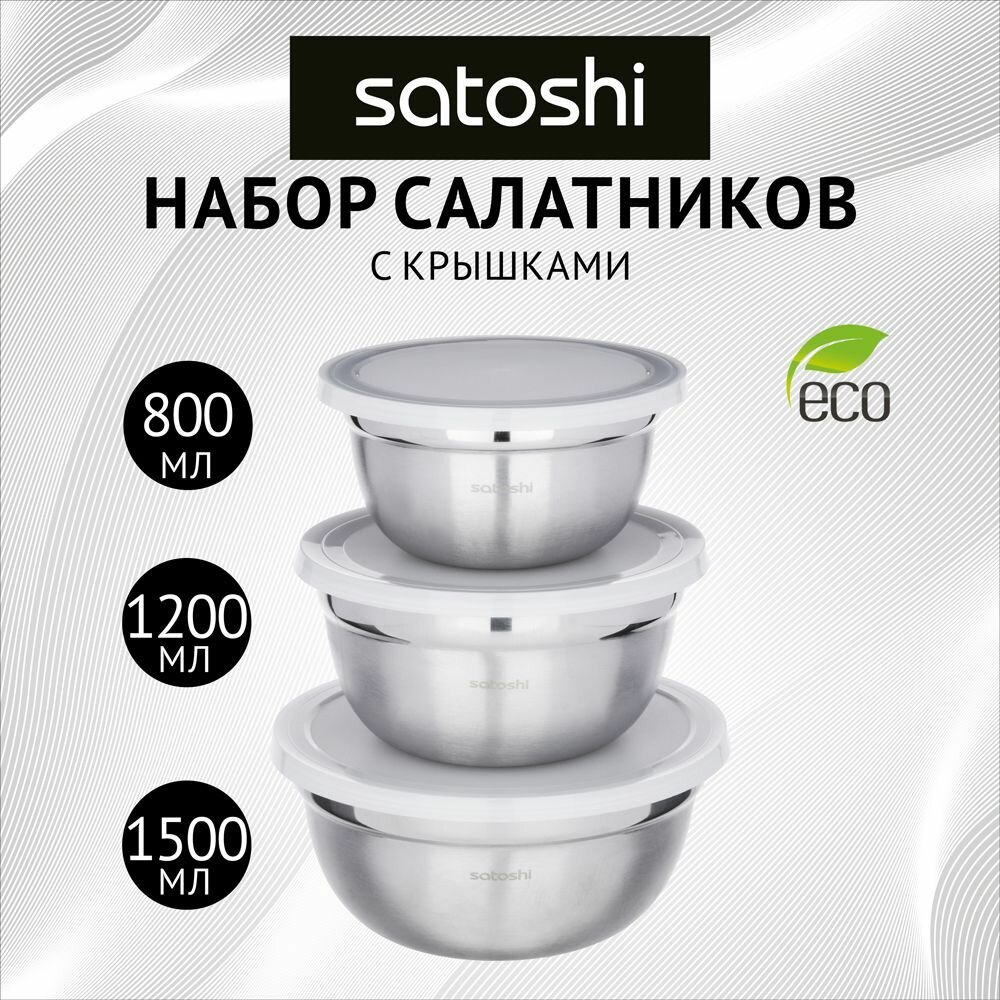 Купить Набор салатников с крышками SATOSHI, 800/1200/1500 мл, крышки 14,16,18см, нержавеющая сталь