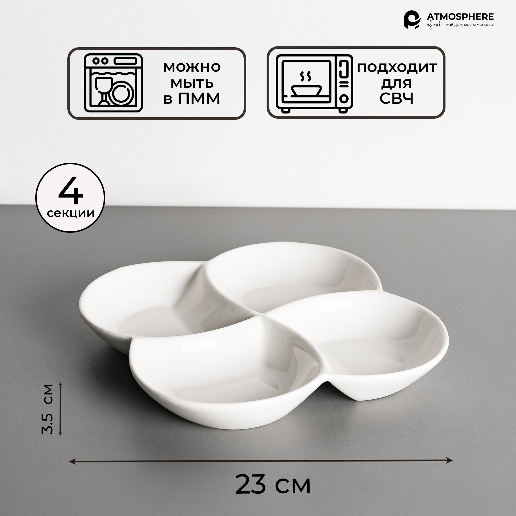 Ниже Вы можете прочитать отзывы на Менажница Atmosphere of Art "Menage" /4 секции/ фарфор/ d-23см, ознакомится с подробными характеристиками, посмотреть интересные обзоры и фотографии на Менажница Atmosphere of Art "Menage" /4 секции/ фарфор/ d-23см.