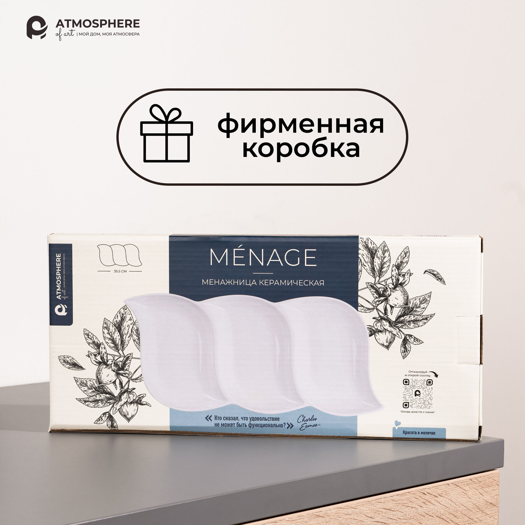 Ниже Вы можете прочитать отзывы на Менажница Atmosphere of Art "Menage" /3 секции/ керамика/ 35.5*18*3см, ознакомится с подробными характеристиками, посмотреть интересные обзоры и фотографии на Менажница Atmosphere of Art "Menage" /3 секции/ керамика/ 35.5*18*3см.