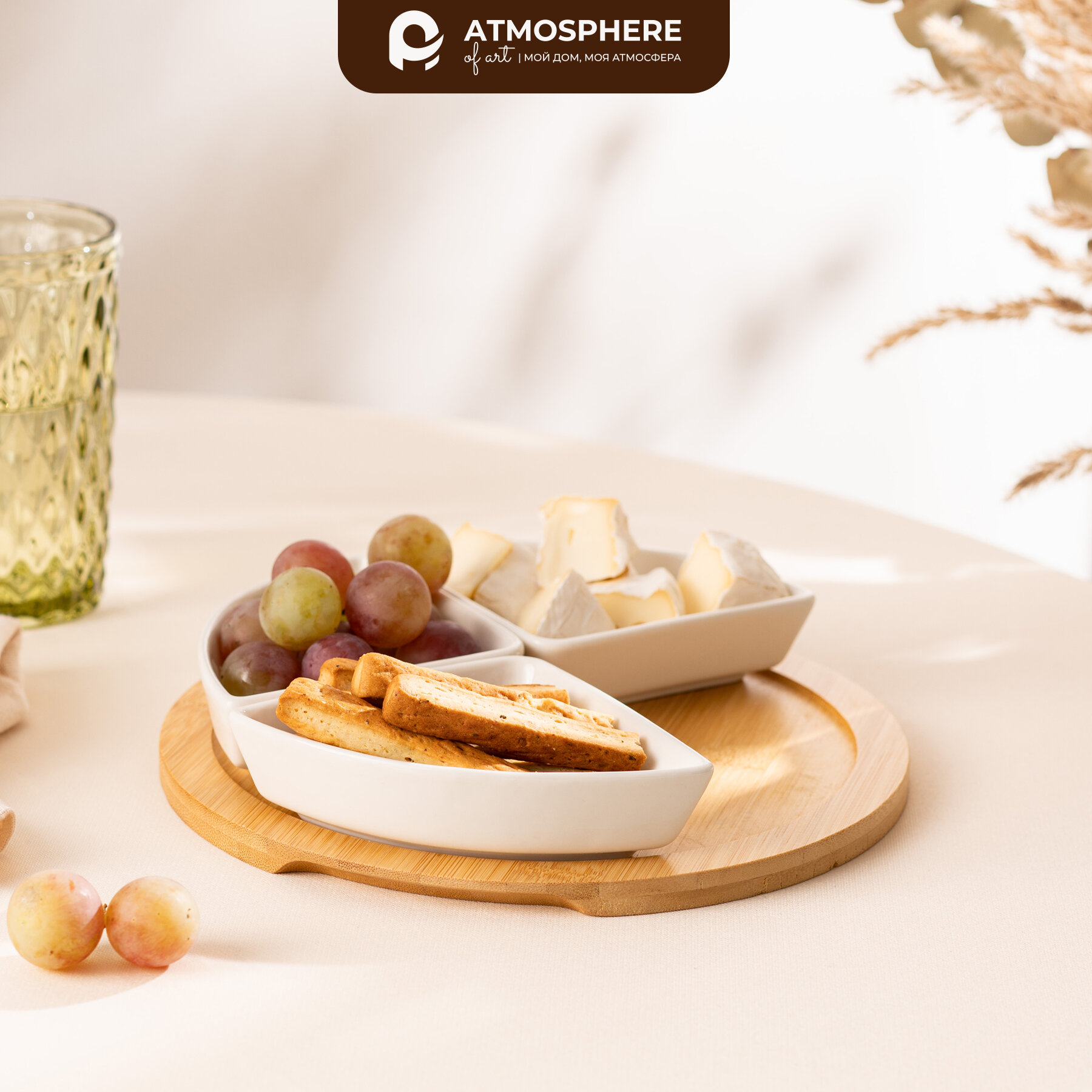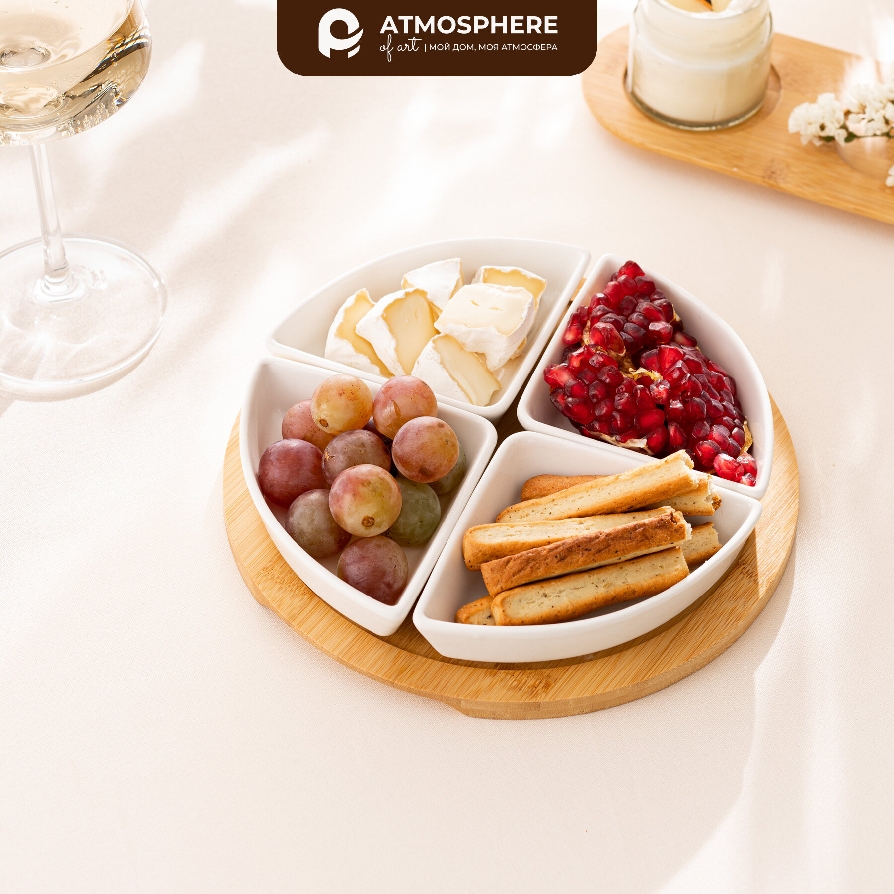 Купить Менажница Atmosphere of Art "Menage" /4 секции/ фарфор/ d-22см/ на бамбуковой подставке