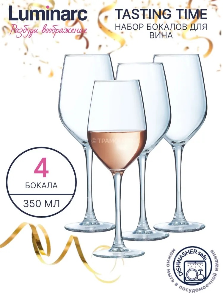 Набор бокалов LUMINARC "Tasting Time", для вина, Шабли, 350мл, 4шт интересное: